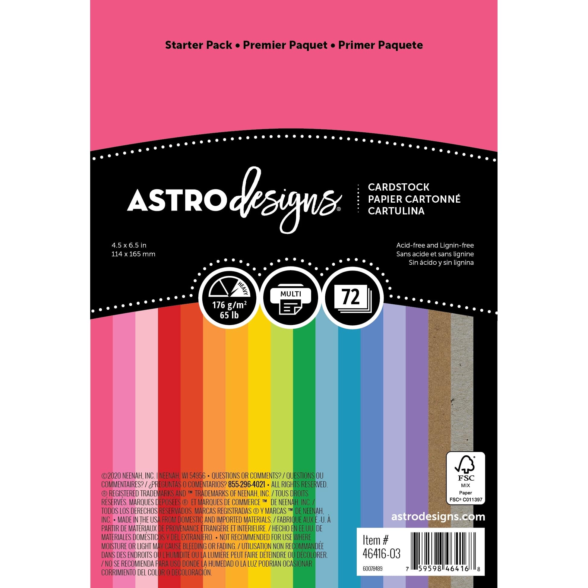 Neenah Astrodesigns Cardstock Pack 4.5"X6.5" 72/Pkg-18 Bold & Vivid Colors