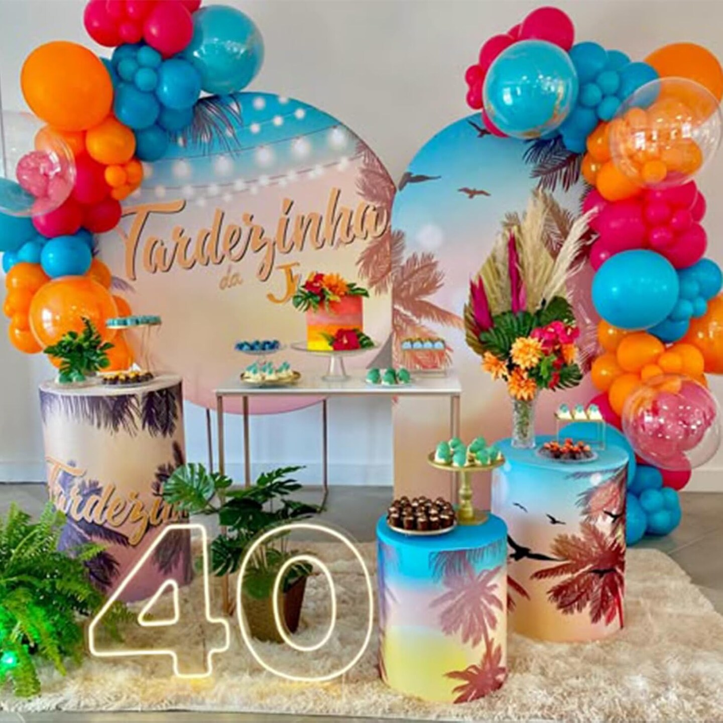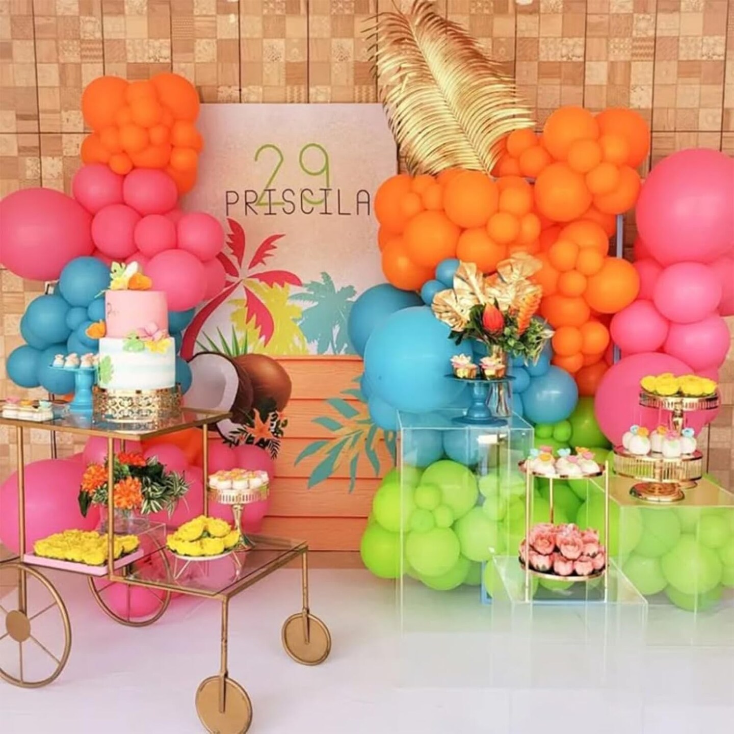 Neon Balloons Arch Kit, Hot Pink Teal Blue and Orange Balloon Garland Kit Rainbow Balloon Summer Tropical Aloha Luau Party Decorations, 18 in Clear Yellow Balloons for Hawaiian Pool Party Decor
