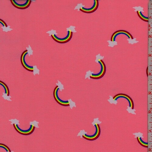 Neon Pink Rainbow Double Brushed Jersey Knit Fabric By the Yard