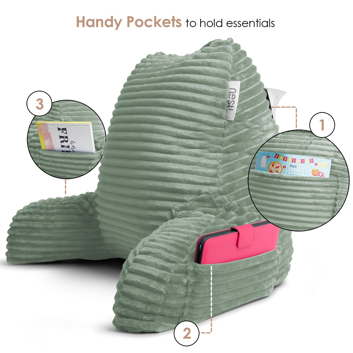 Nestl Reading Pillow for Bed Adult with Fleece Blanket