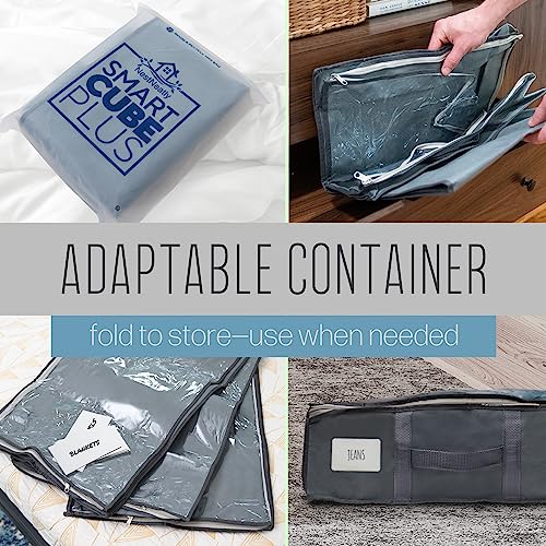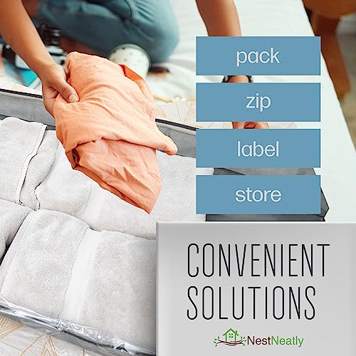 NestNeatly SmartCube Under Bed Storage Bag - Set of 3 Foldable Organization Bins - Fits Under Bed Or In Closets - Store Clothes, Blankets, Toys In Clear Zippered Fabric Organizers - Includes 10 Labels