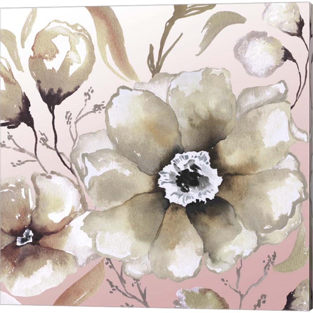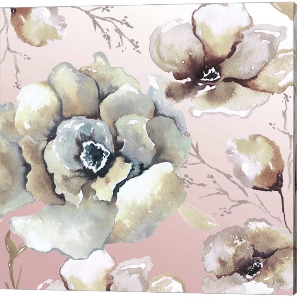 Neutral Flowers on Pink by Elizabeth Medley 14" x 14" Canvas Wall Art (Set of 2)
