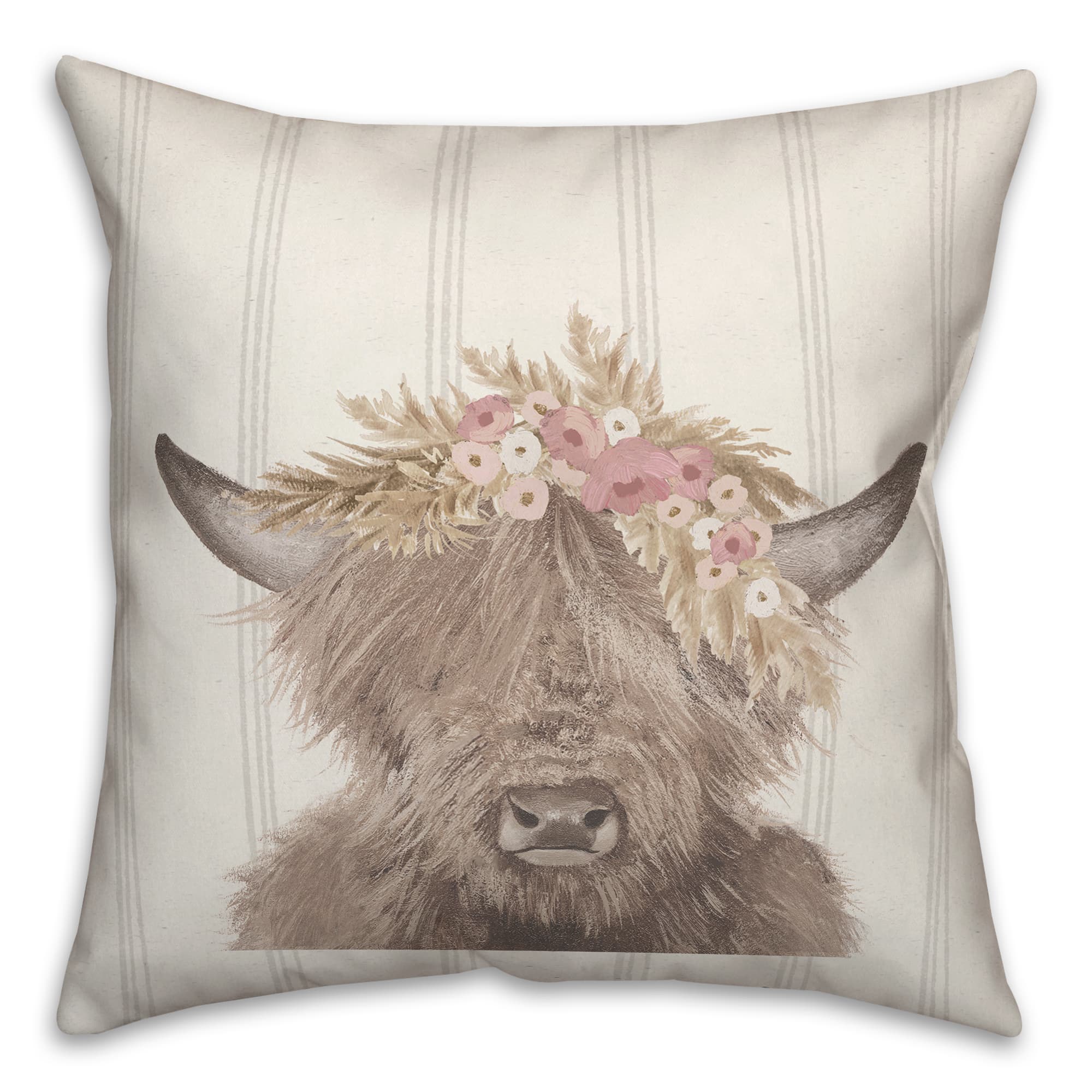 Neutral Highland Cow Indoor/Outdoor Pillow