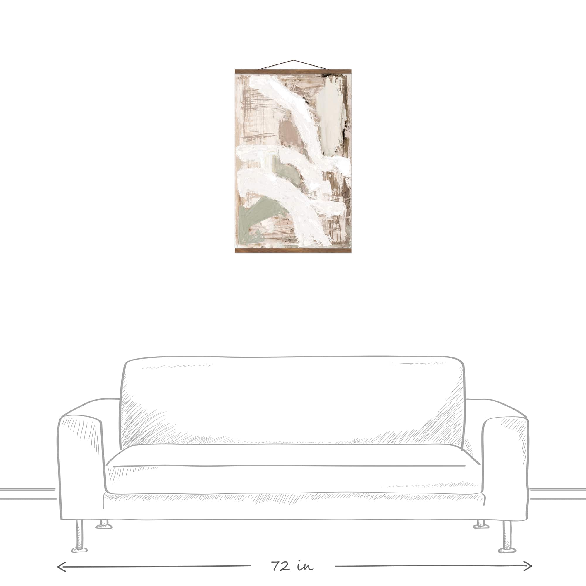 Neutral Painterly Abstract 20" x 30" Teak Hanging Canvas