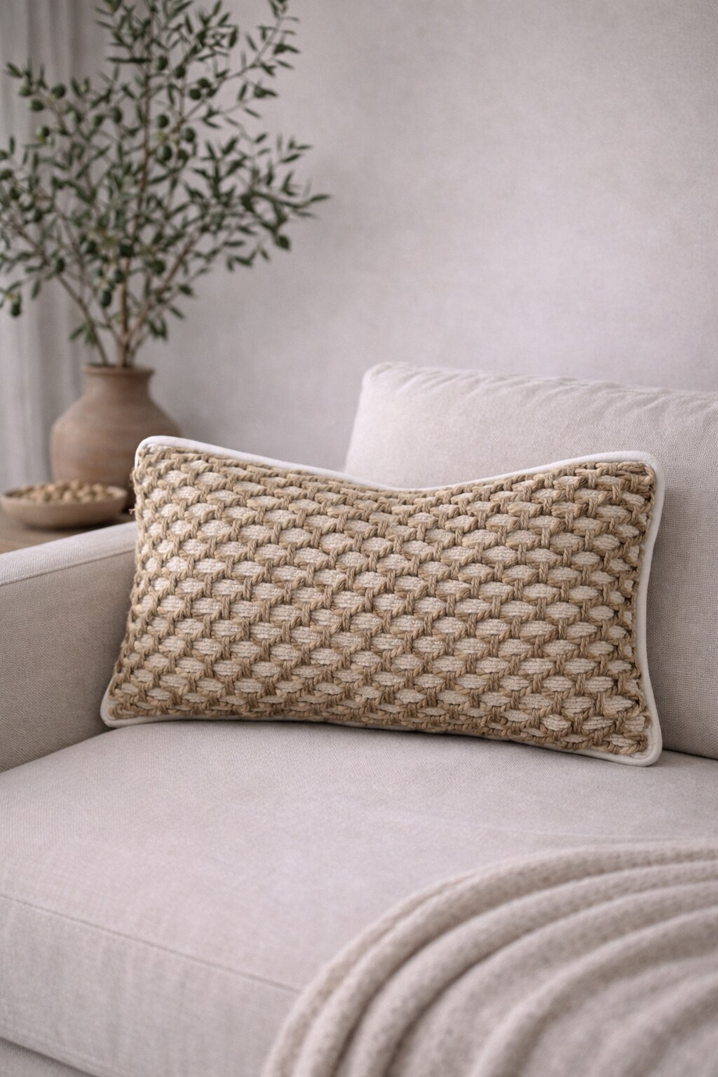 Neutral Textured Lumbar Pillow Cover, 12x20 – Braided Jute Boho Accent