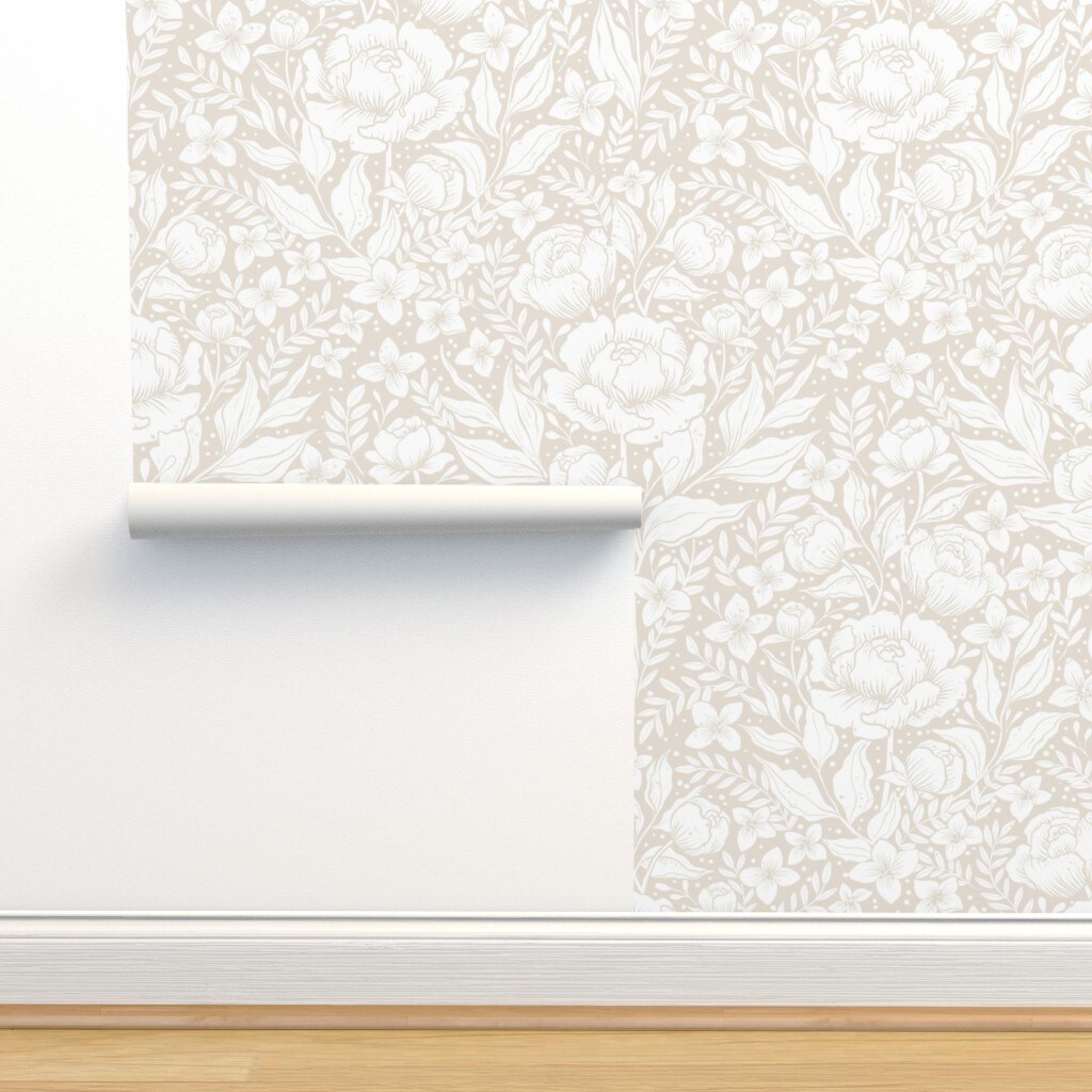 Neutral Victorian Large Scale Chintz William Morris Cottage Neutral Botanical Earth Tone Elegant Garden Custom Removable Wallpaper by Spoonflower Peel & Stick Wallpaper 2FT Wide