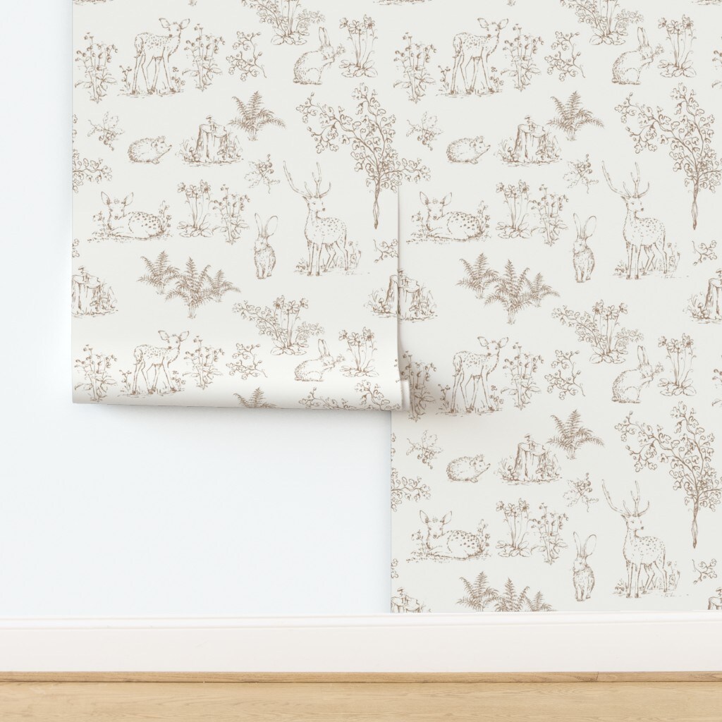 Neutral Woodland Animals Hand Drawn Deer Rabbit Hedgehog Whimsical Sketch Forest Toile Nursery Custom Removable Wallpaper by Spoonflower Peel & Stick Wallpaper 2FT Wide