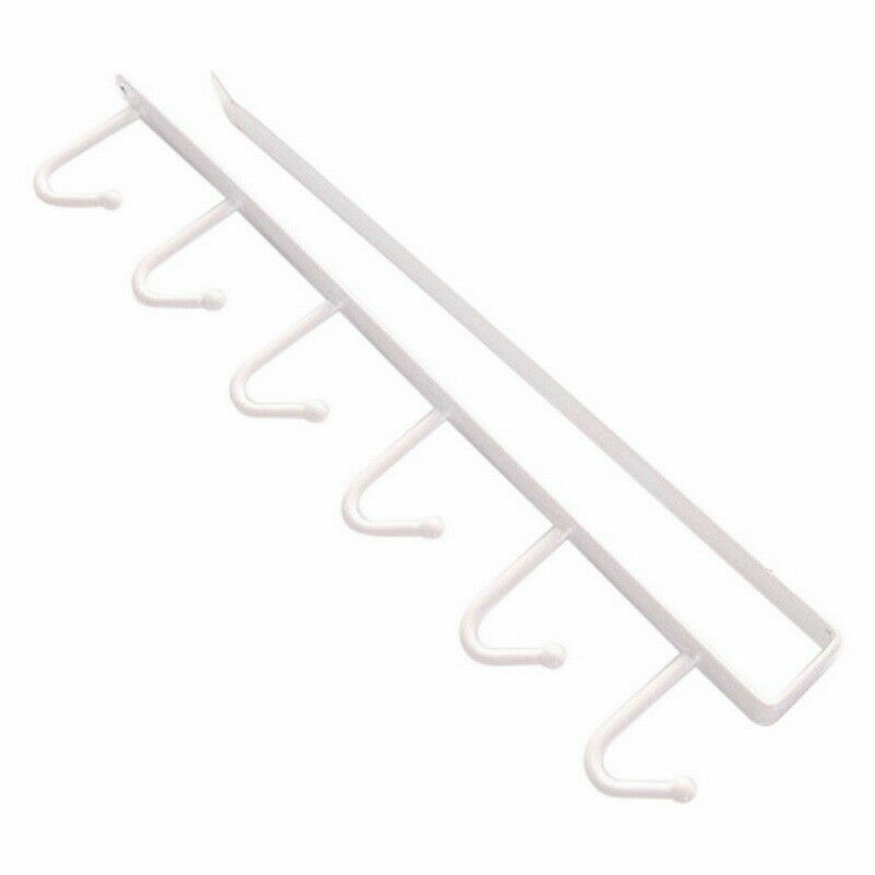 New Black 6 Hooks Cup Holder Hang Kitchen Cabinet Shelf Storage Rack Organizer-white
