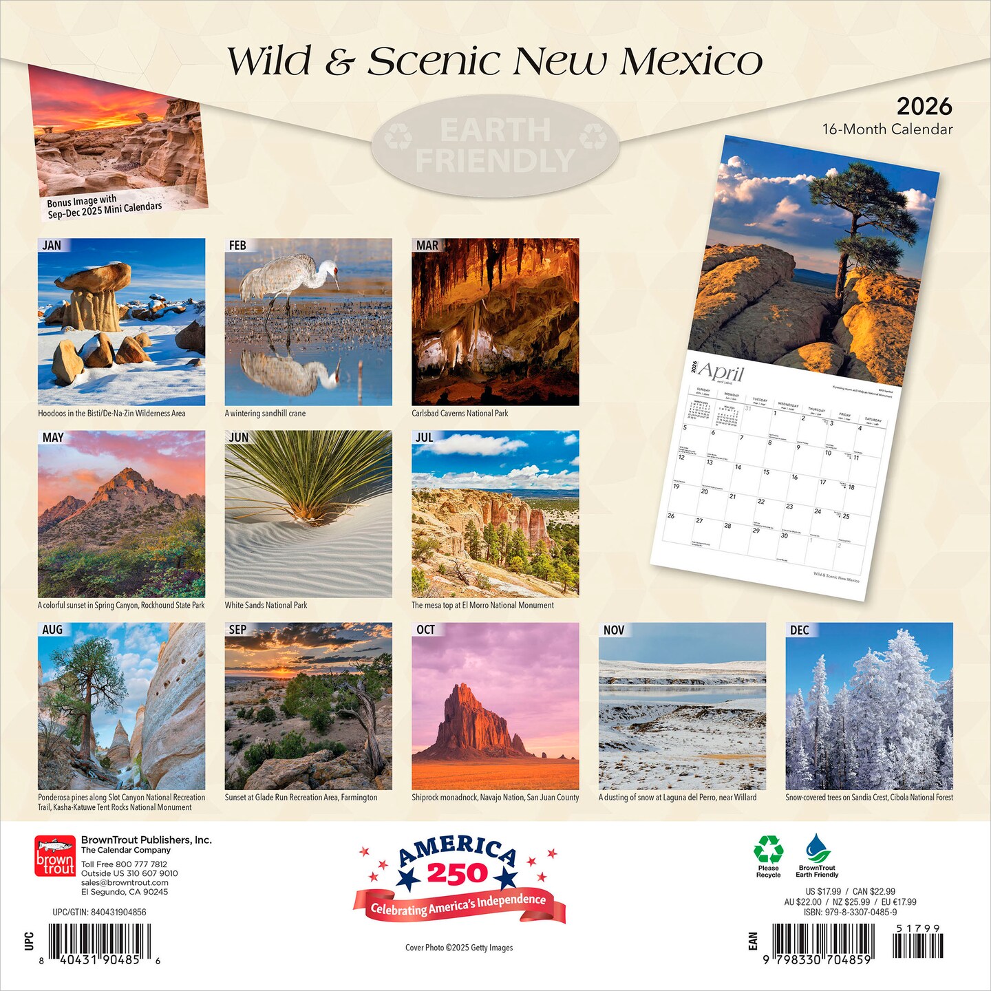 New Mexico Wild & Scenic | 2026 12 x 24 Inch (Hanging) Monthly Square Wall Calendar | Plastic-Free