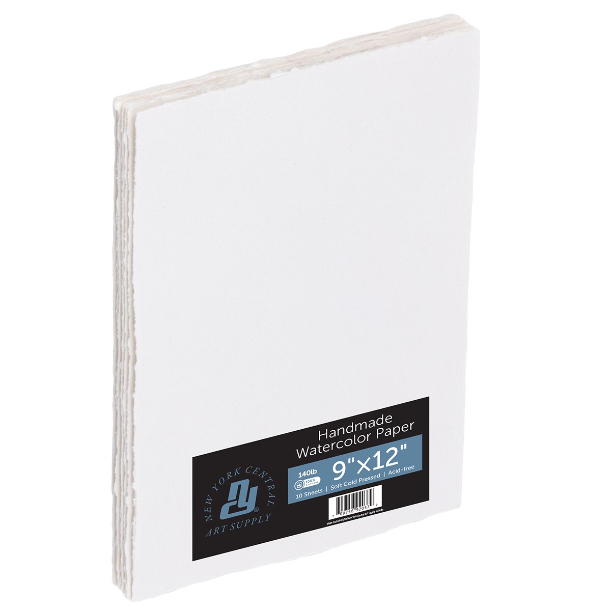New York Central Handmade Watercolor Paper - 140lb, 9"X12" - 1 Pack of 10 Sheets, Acid-Free 100% Cotton Rag, Cold Press, 4 Deckled Edges, Minimally Sized, Mixed Media Paper for Charcoal & Pastels