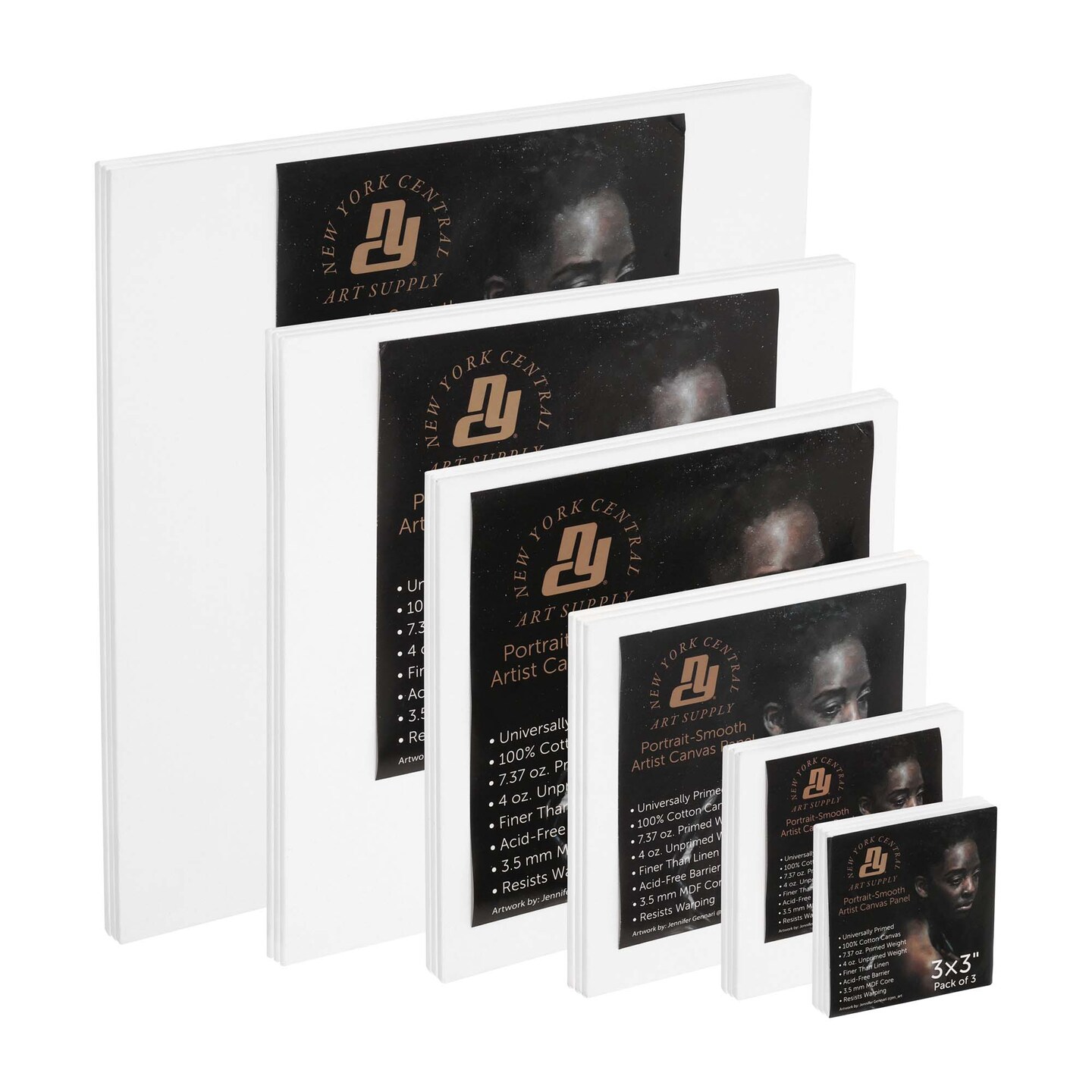 New York Central Portrait-Smooth Artist Canvas Panel Bundles- Assorted Sizes and Quantities - Professional Quality 100% Cotton Canvas Panels for Painting- Ideal Painting Canvas Panels for Acrylics & Oils