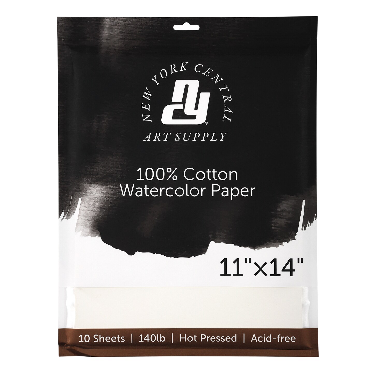 New York Central Watercolor Paper - 11x14" - 1 Pack of 10 Sheets, 140 lb. Hot Press - 100% Cotton, Acid-Free, Archival Quality, Bright White Watercolor Paper Pad for Wet & Dry Media