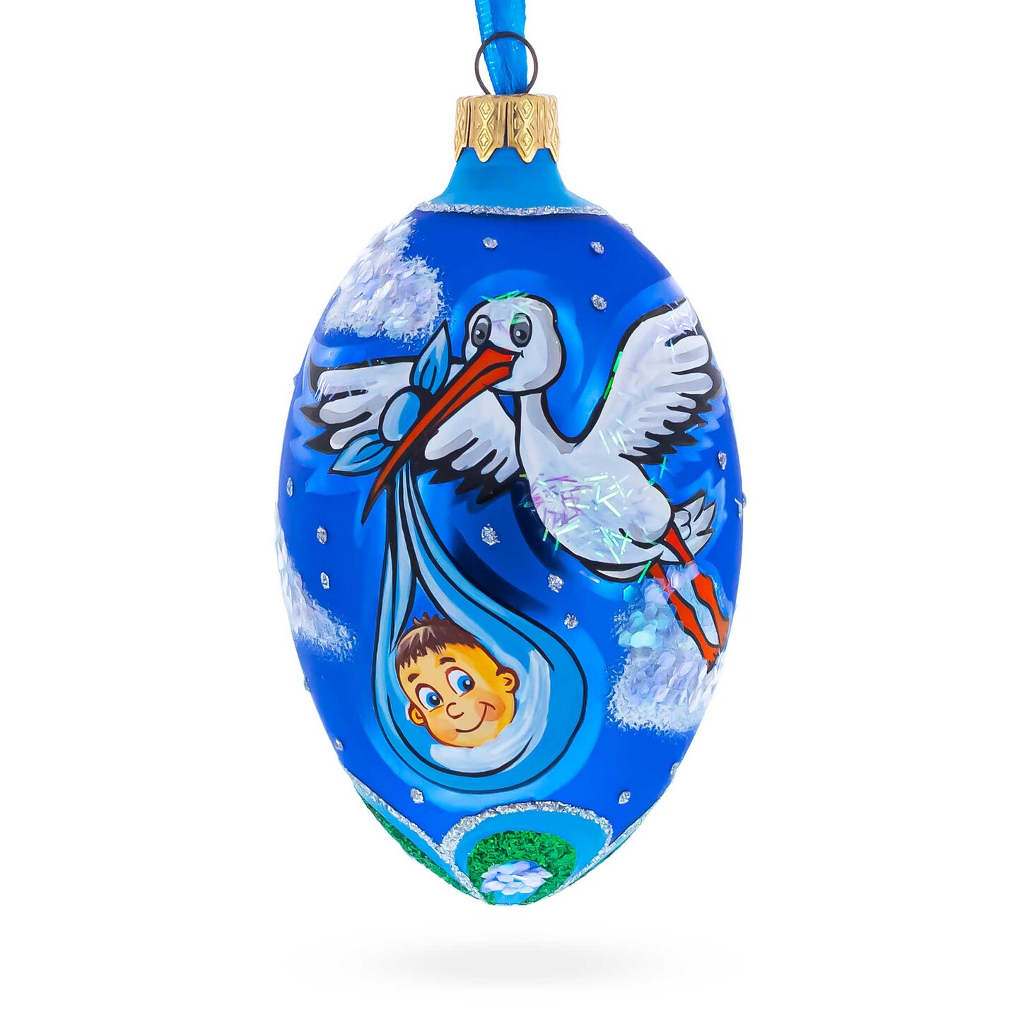 Newborn Baby Boy Egg Glass Ornament 4 Inches