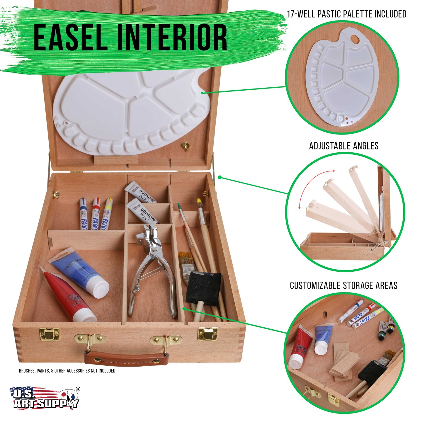 Newport Large Adjustable Wood Desktop Easel - Premium Beechwood Tabletop Drawing Easel with Storage, Paint Palette, Portable Easels for Painting, Drawing, Sketchbox