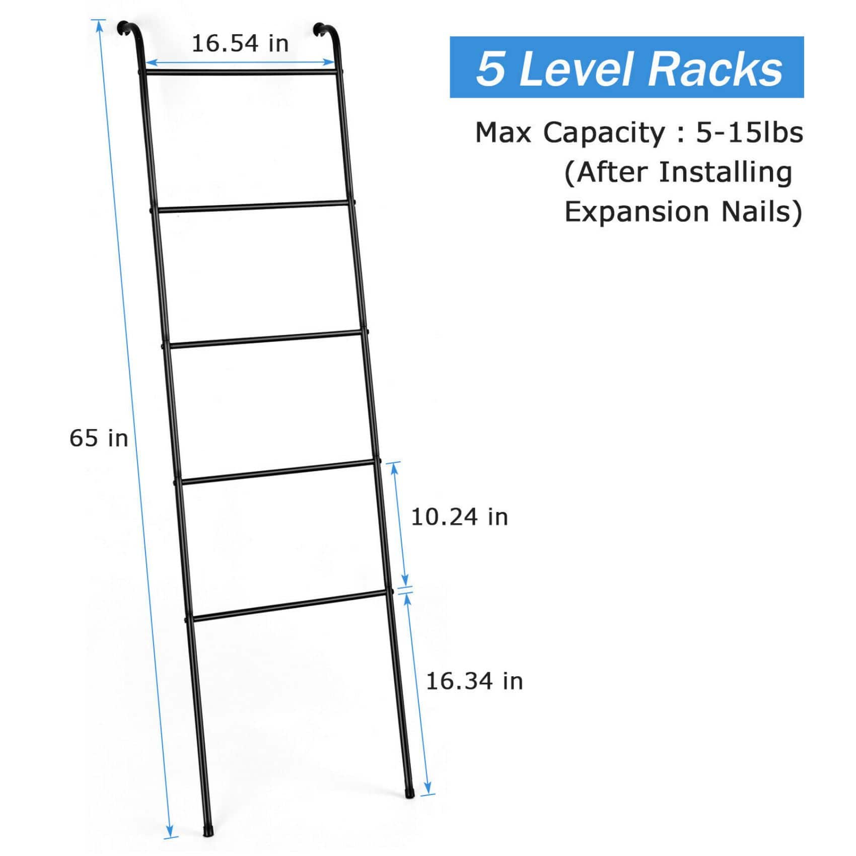 NEX™ 5.5ft. 5-Tier Black Wall-Mounted Metal Blanket and Towel Ladder