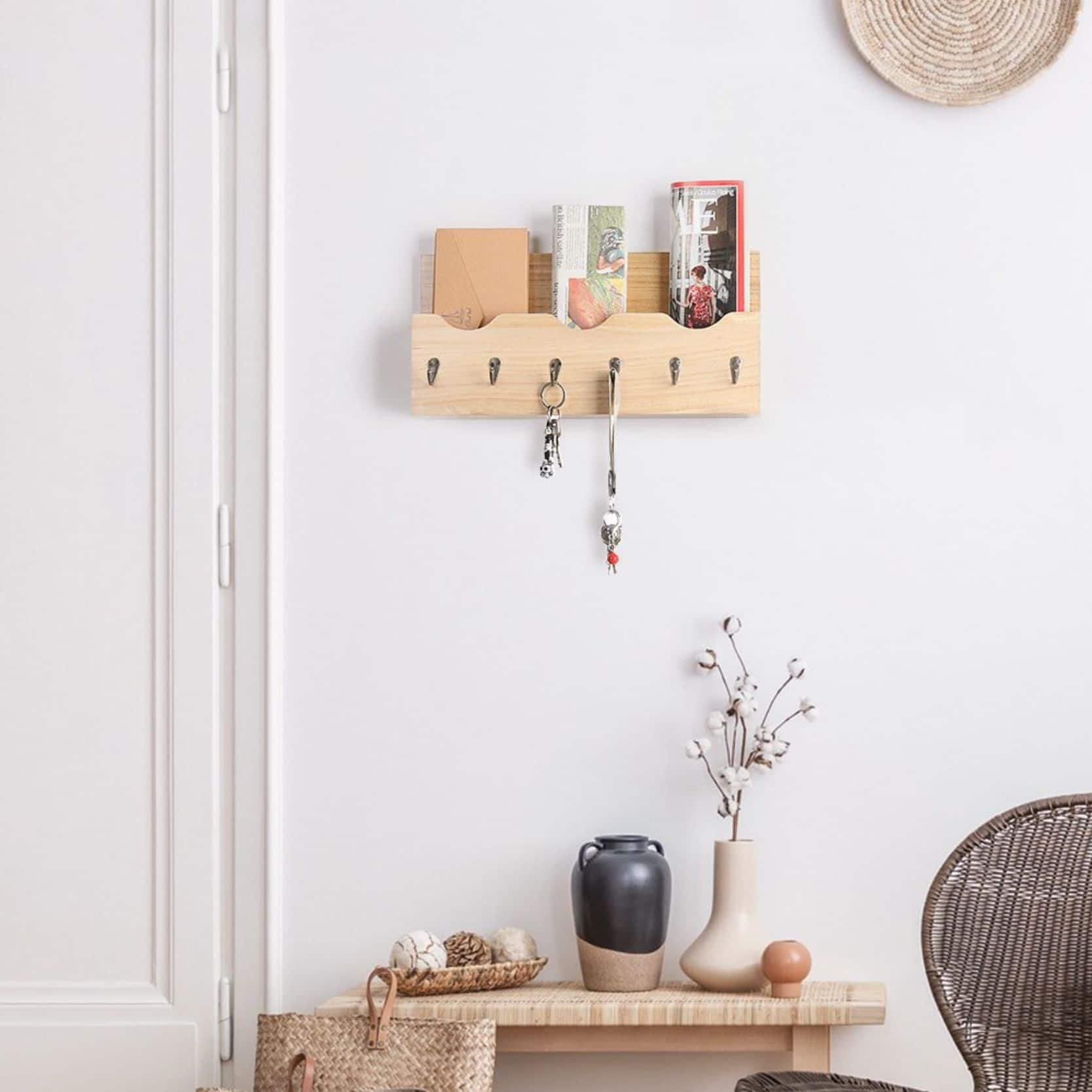 NEX™ Brown Wall Mounted Mail Holder & Organizer with 6 Key Hooks
