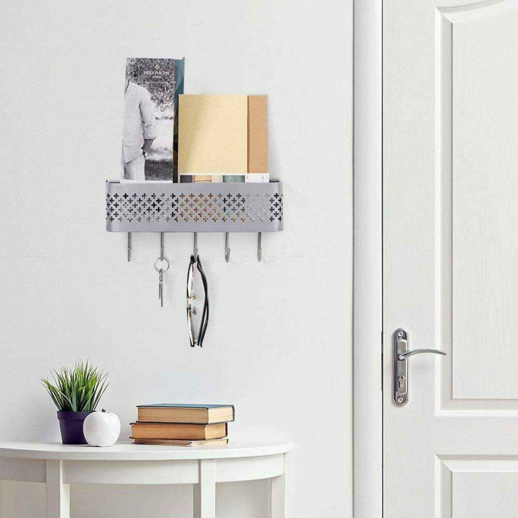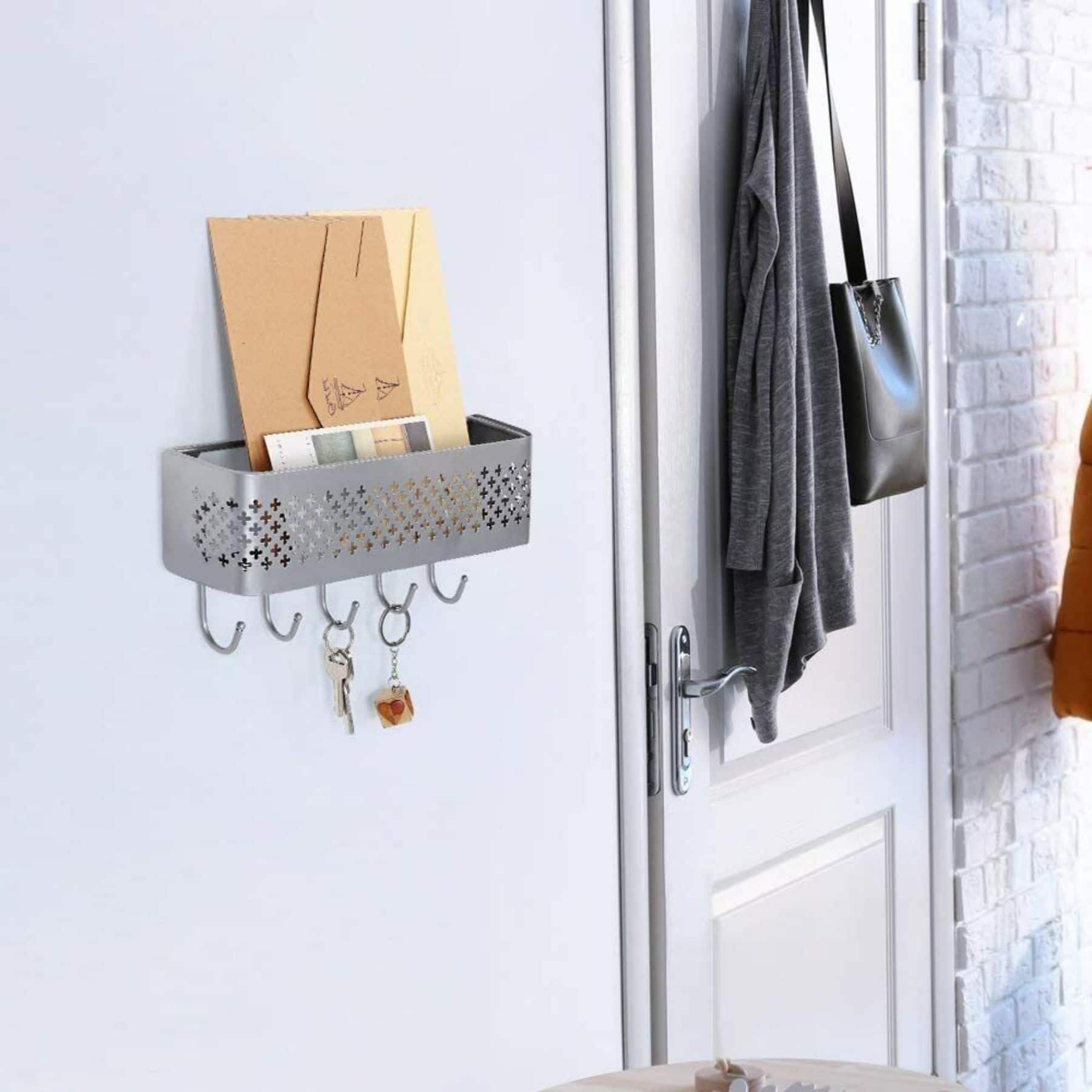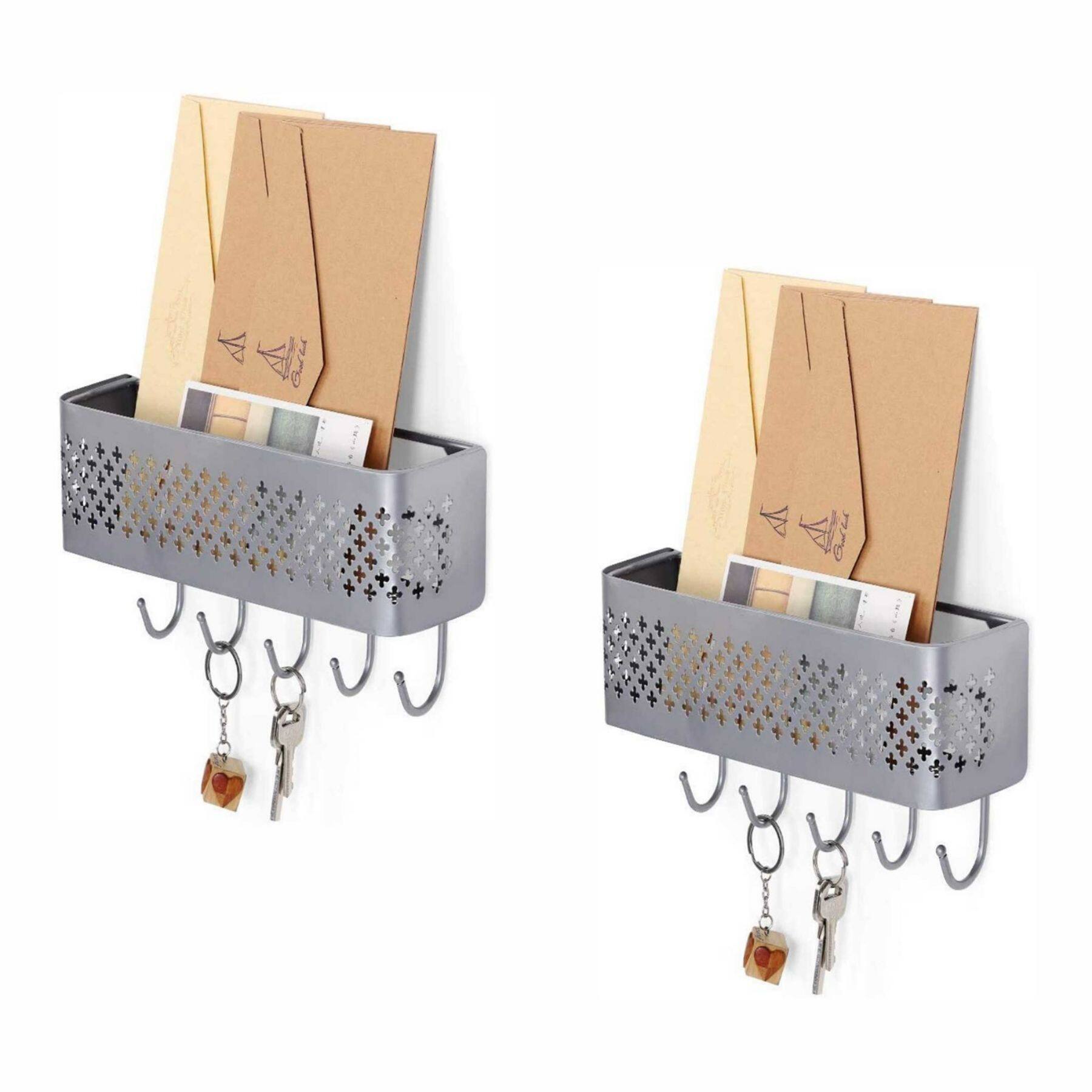 NEX™ Silver Wall Mount Mail Sorter & 5 Hook Key Organizer, 2ct.