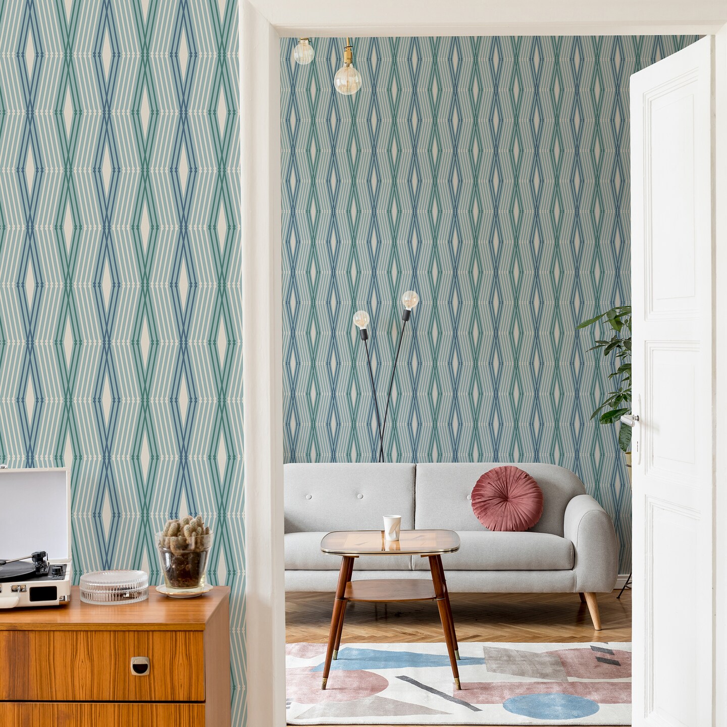 Nicole Miller Hard Edge Ogee Chambray Peel & Stick Wallpaper