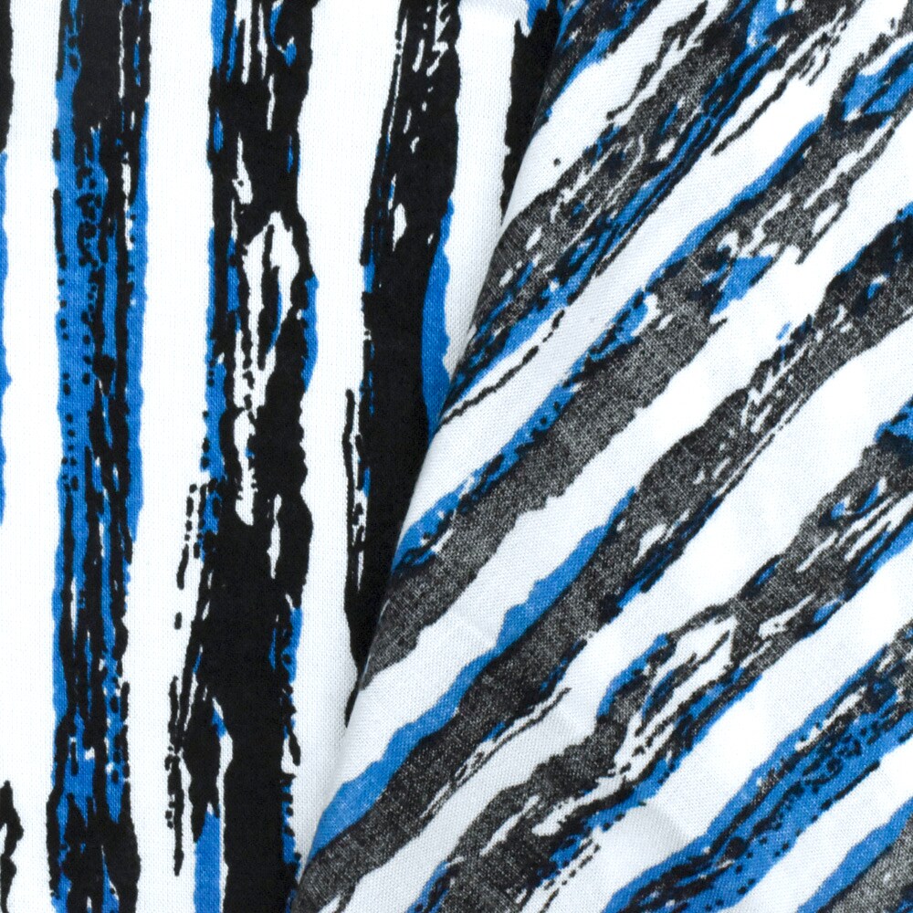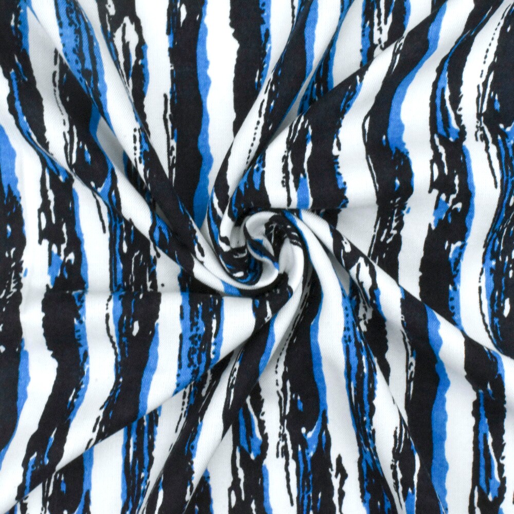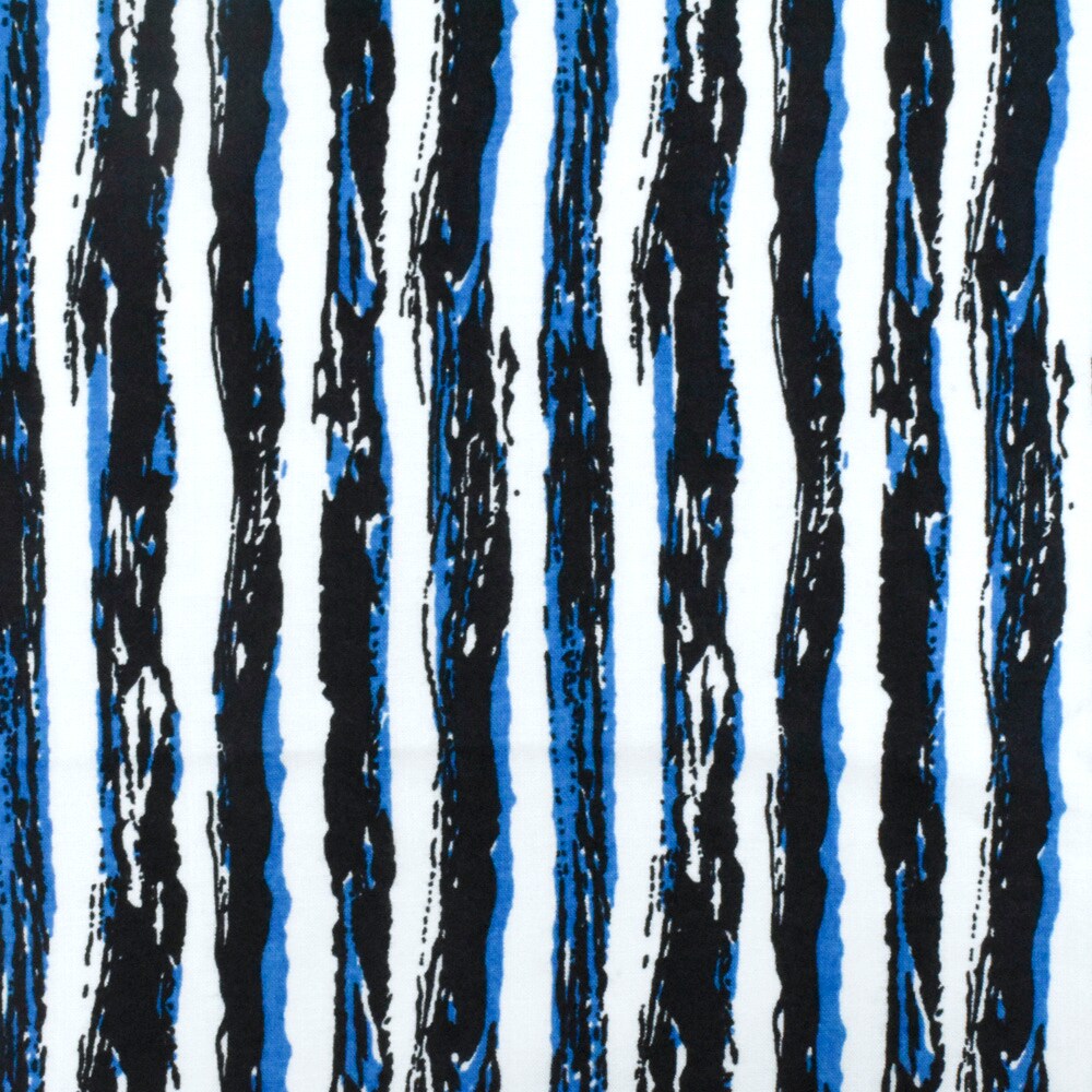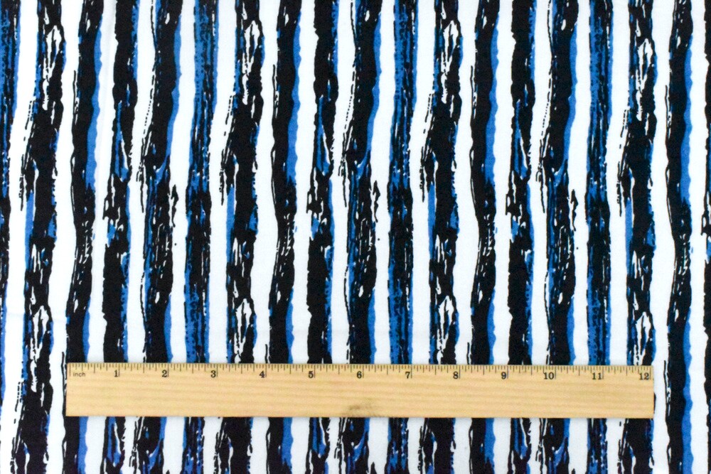 Night Blue-White-Blue Painting Stripe Printed Rayon Challis Woven Fabric By the Yard