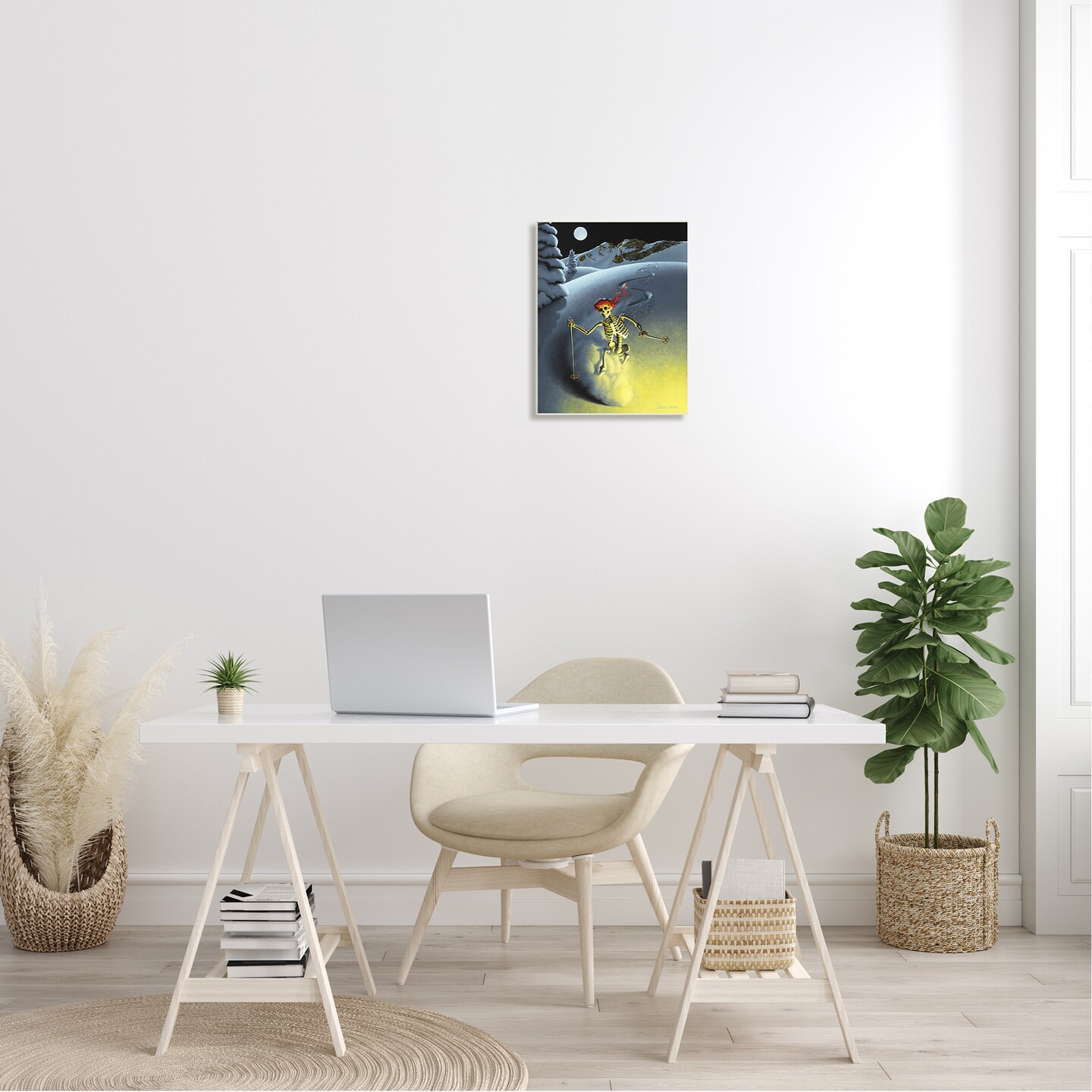 Nighttime Moon Skiing Skeleton Winter Snow Slope Wall Plaque Art