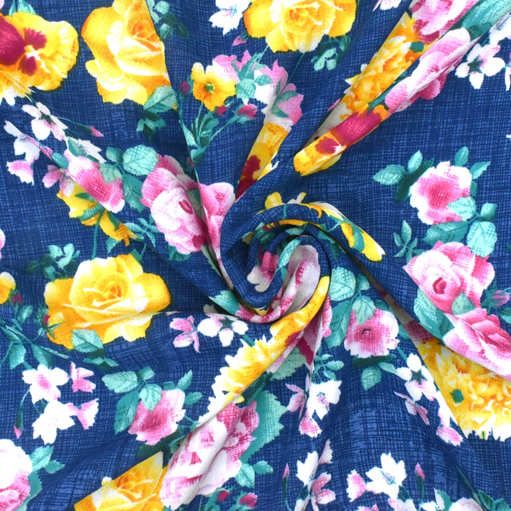 Nile Blue-Yellow-Multi Floral Printed Polyester Georgette Woven Fabric By the Yard