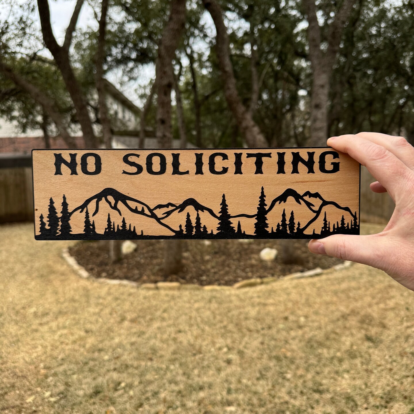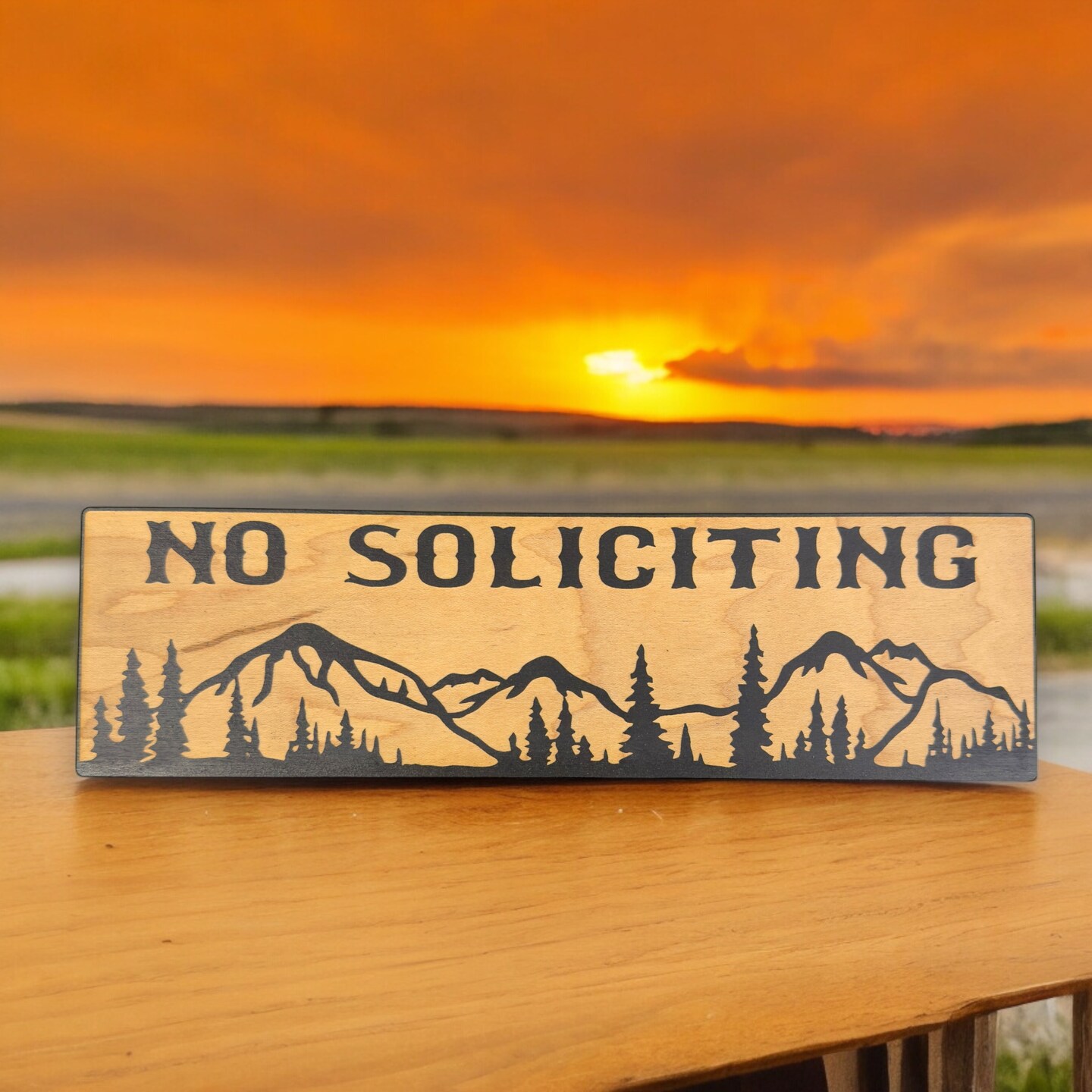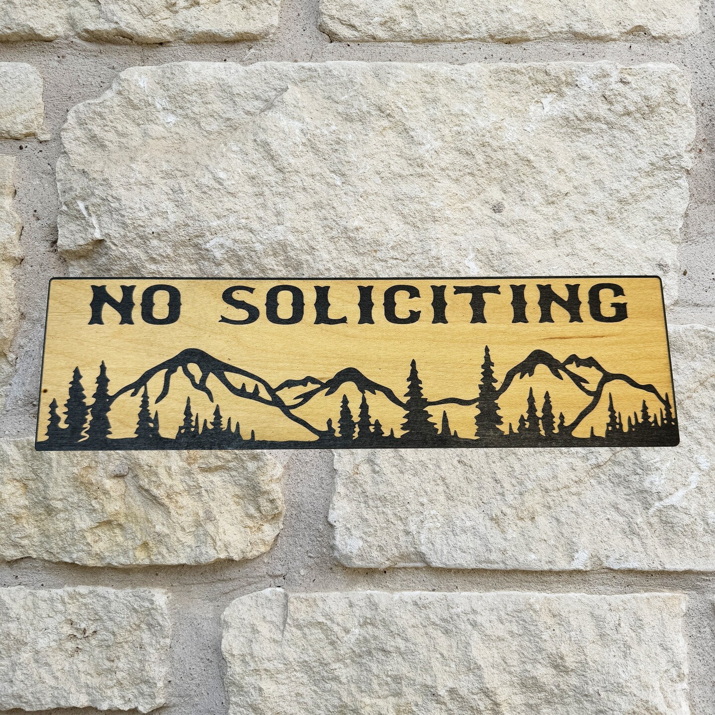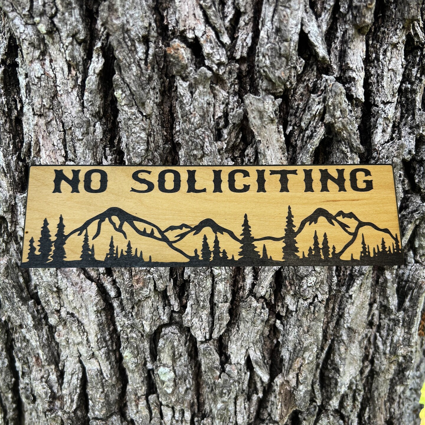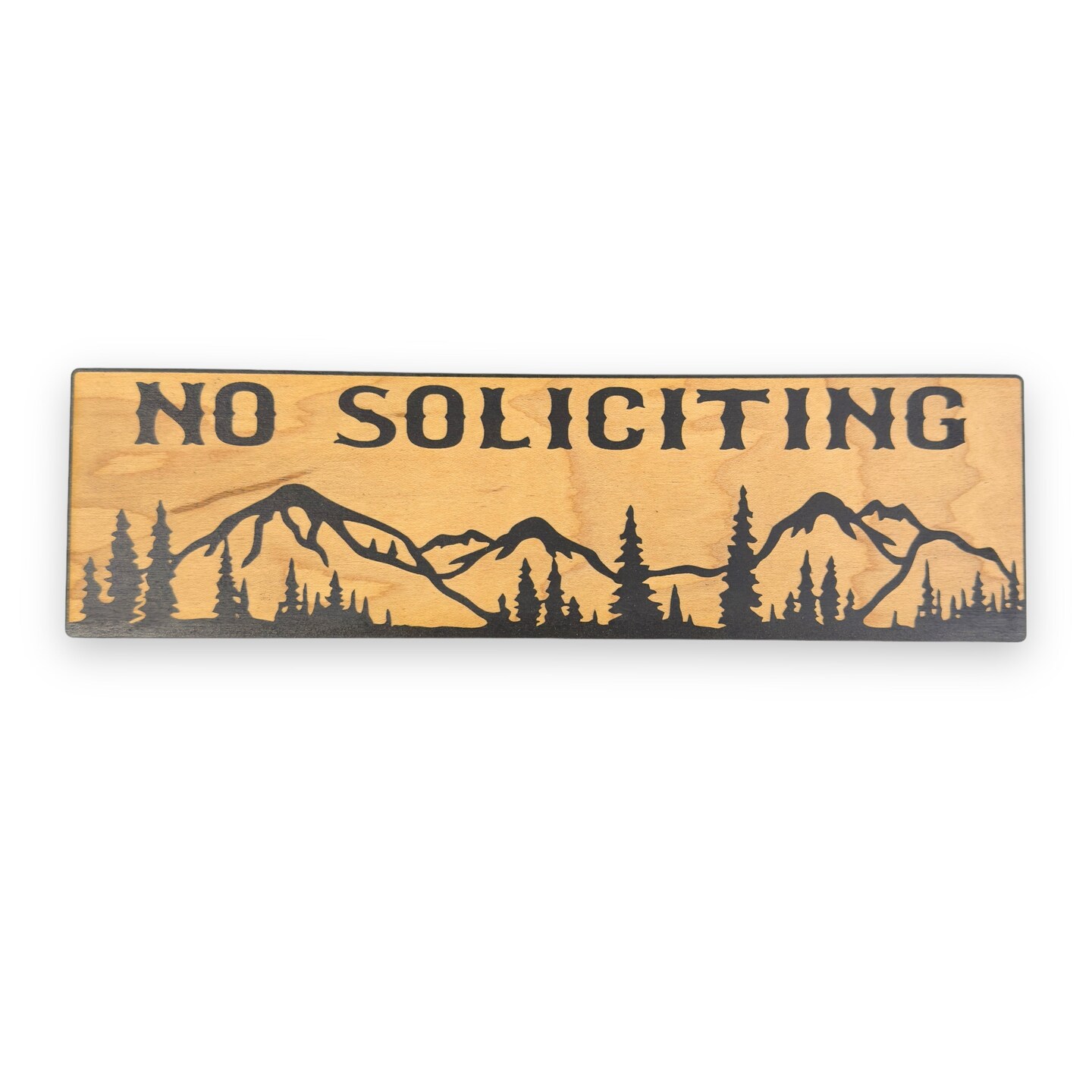No Soliciting Mountain Scene - BLACK Sign 4"x12"