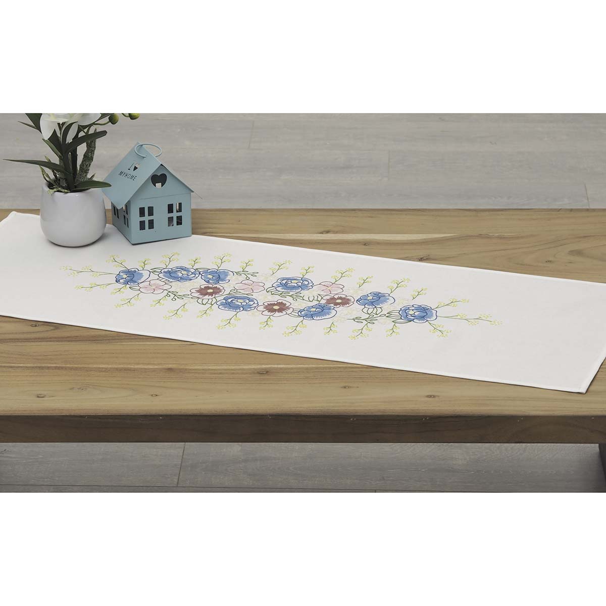 Nob Hill Calming Floral Table Runner Stamped Embroidery Kit