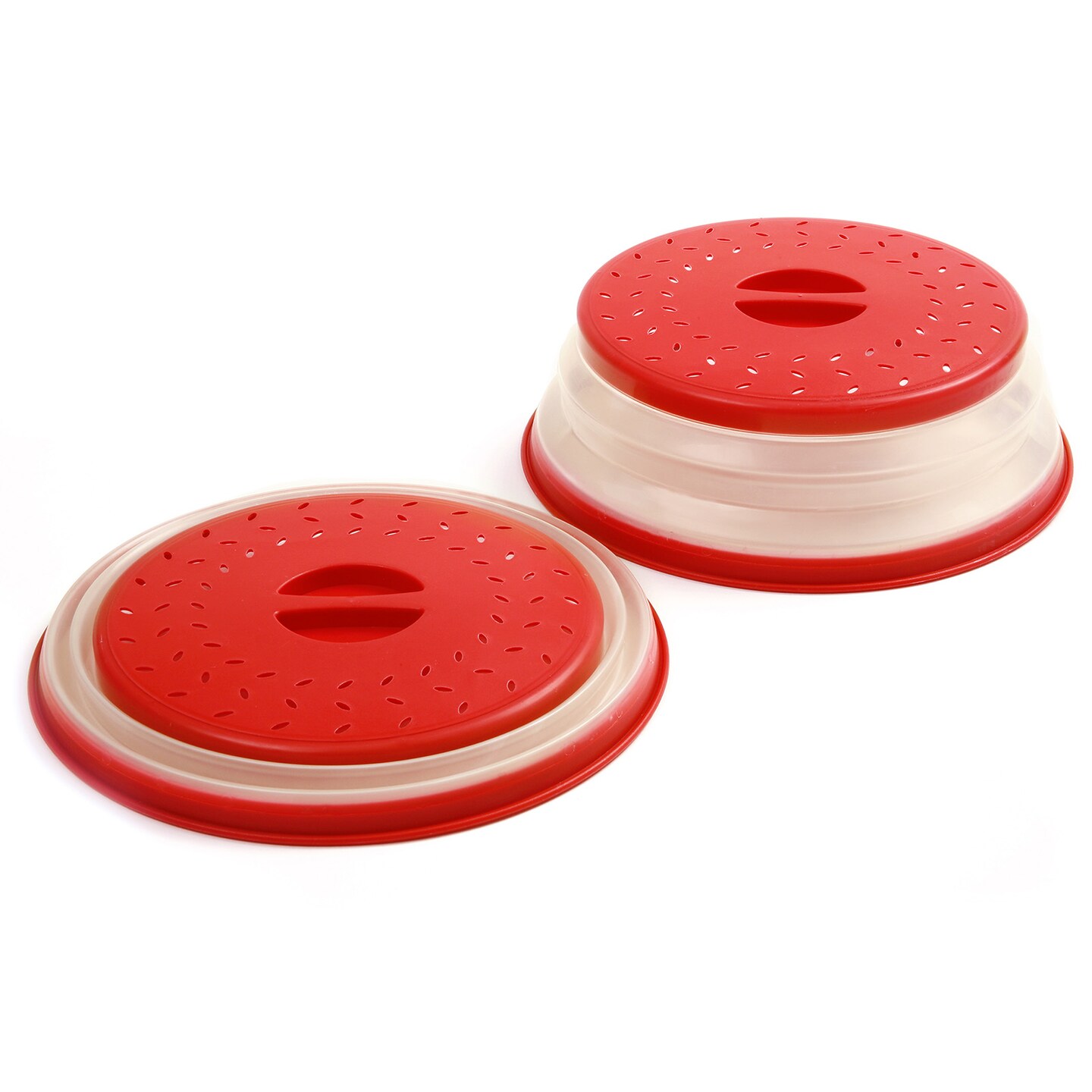 Norpro Knockdown Collapsible Microwave Food Cover, Red/Clear