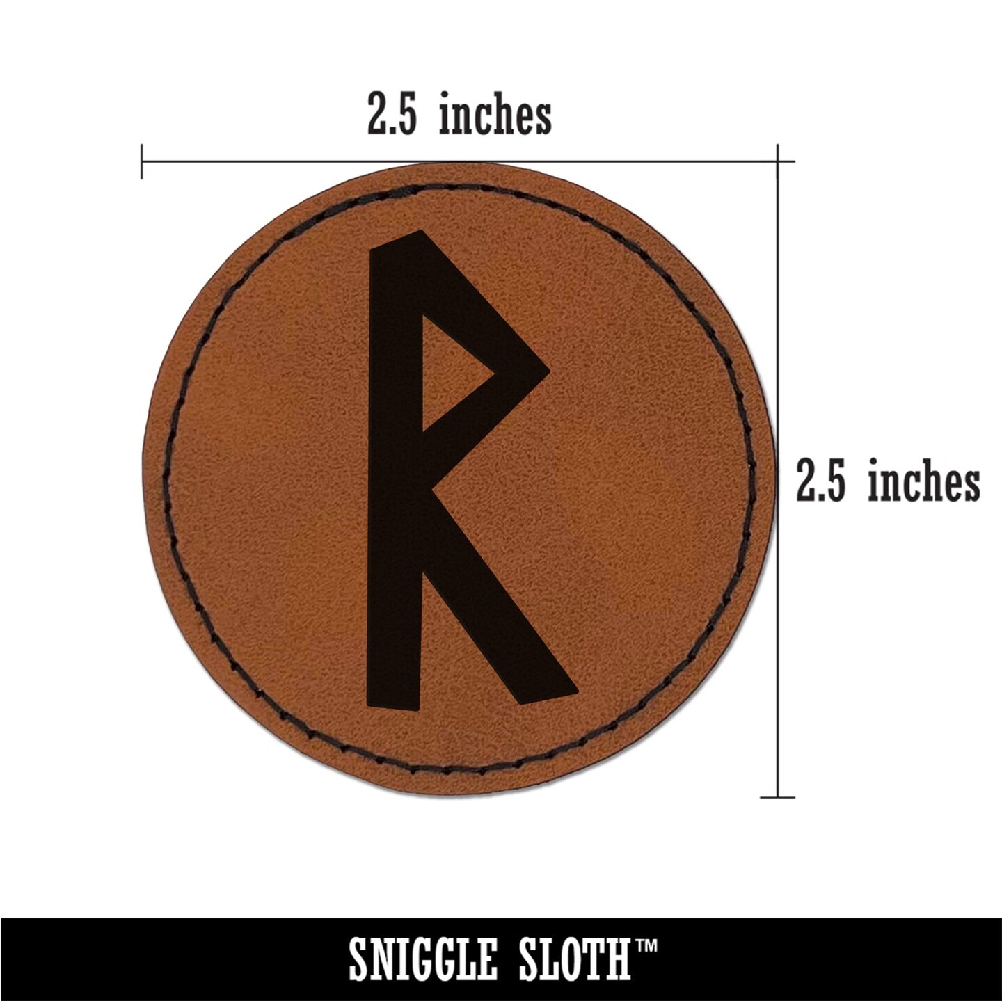 Norse Viking Dwarven Rune Letter R Round Iron-On Engraved Faux Leather Patch Applique - 2.5"