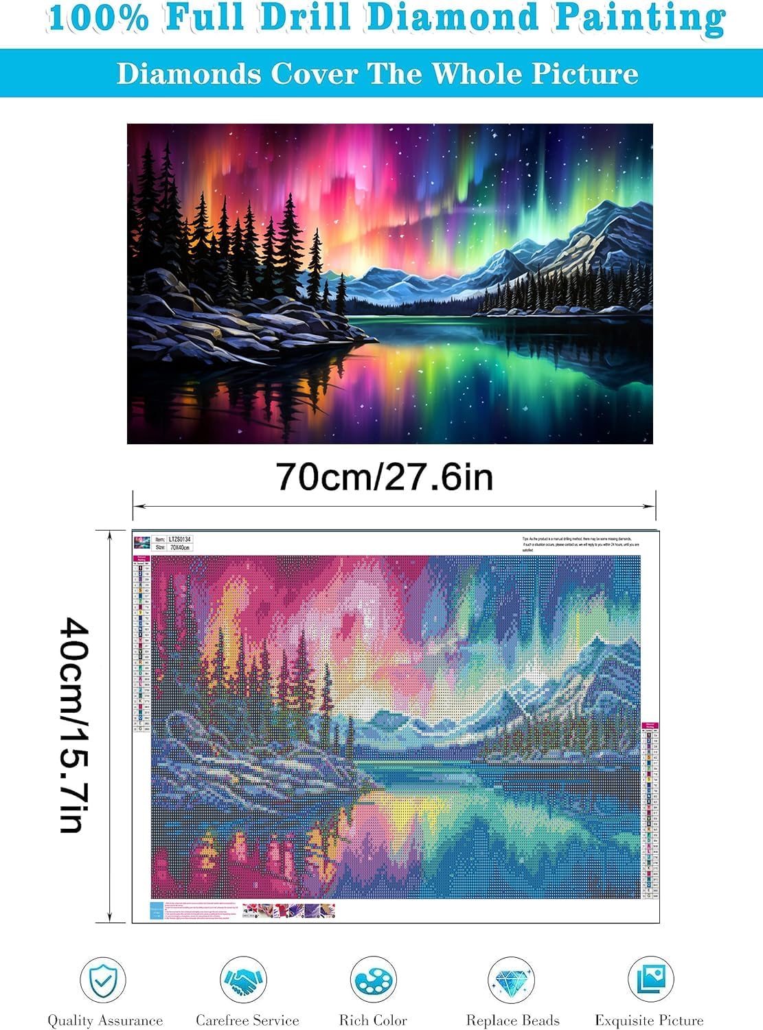 Northern Lights Diamond Art Painting Kits for Adults-5D Large Size Aurora Diamond Art Painting for Beginners, DIY Round Full Drill Aurora Landscape Gem Art Crafts Kits