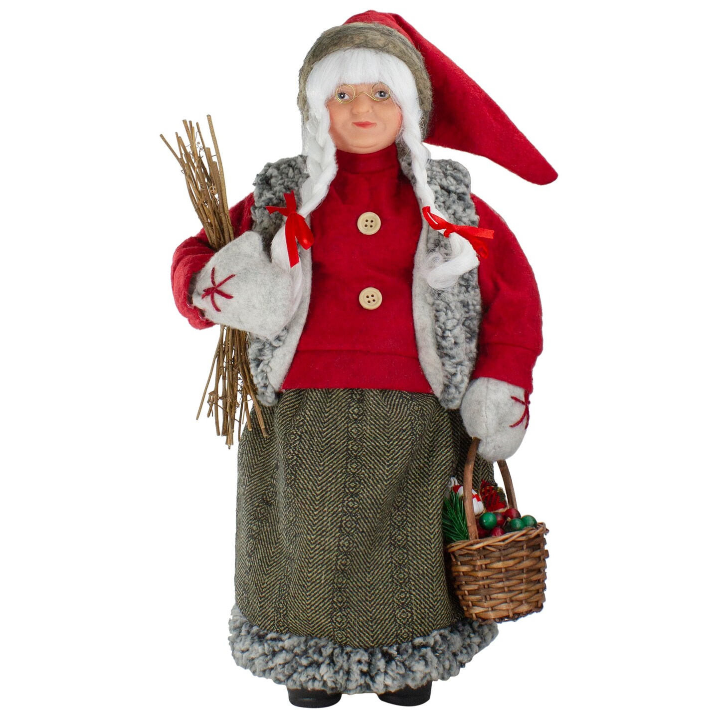 Northlight 18" Mrs. Claus Carrying a Basket and Twigs Christmas Figure