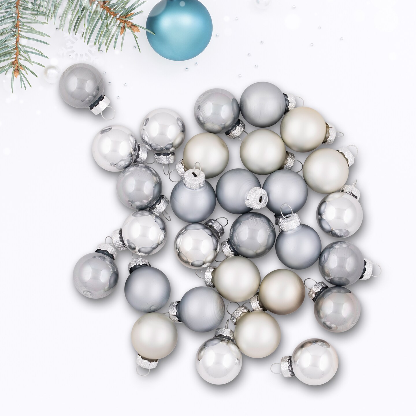 Northlight 2-Finish Christmas Mini Glass Ball Ornaments - 1" (25mm) - Silver and Gray- 28ct