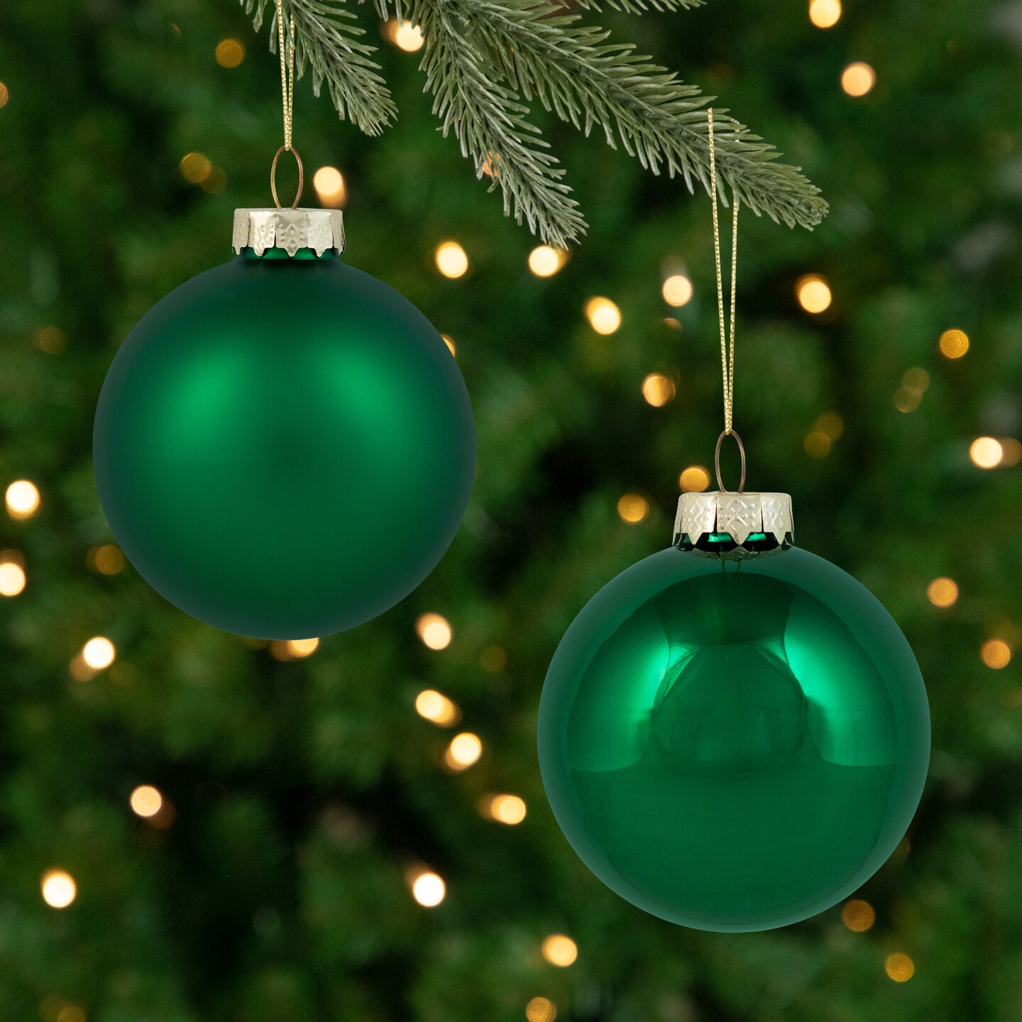 Northlight 2-Finish Glass Christmas Ball Ornaments - 2.5" (60mm) - Pine Green - 9ct