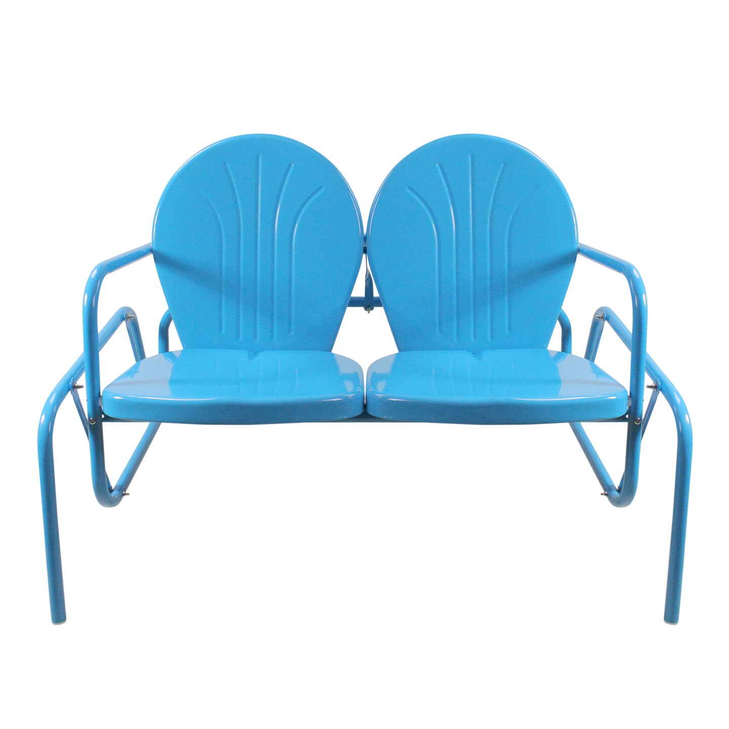 Northlight 2-Person Outdoor Retro Metal Tulip Double Glider Patio Chair, Turquoise Blue