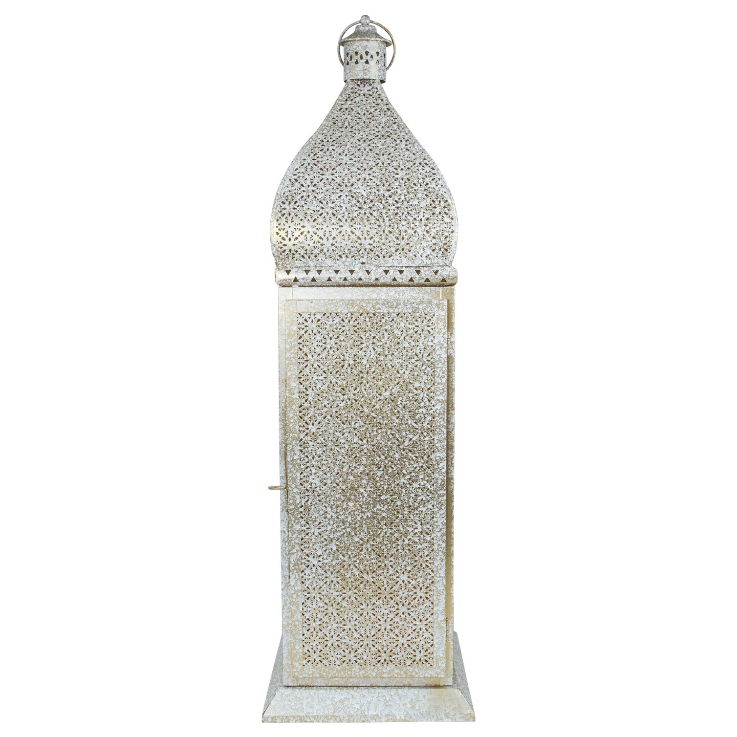 Northlight 30.5" White and Gold Moroccan Style Pillar Candle Floor Lantern