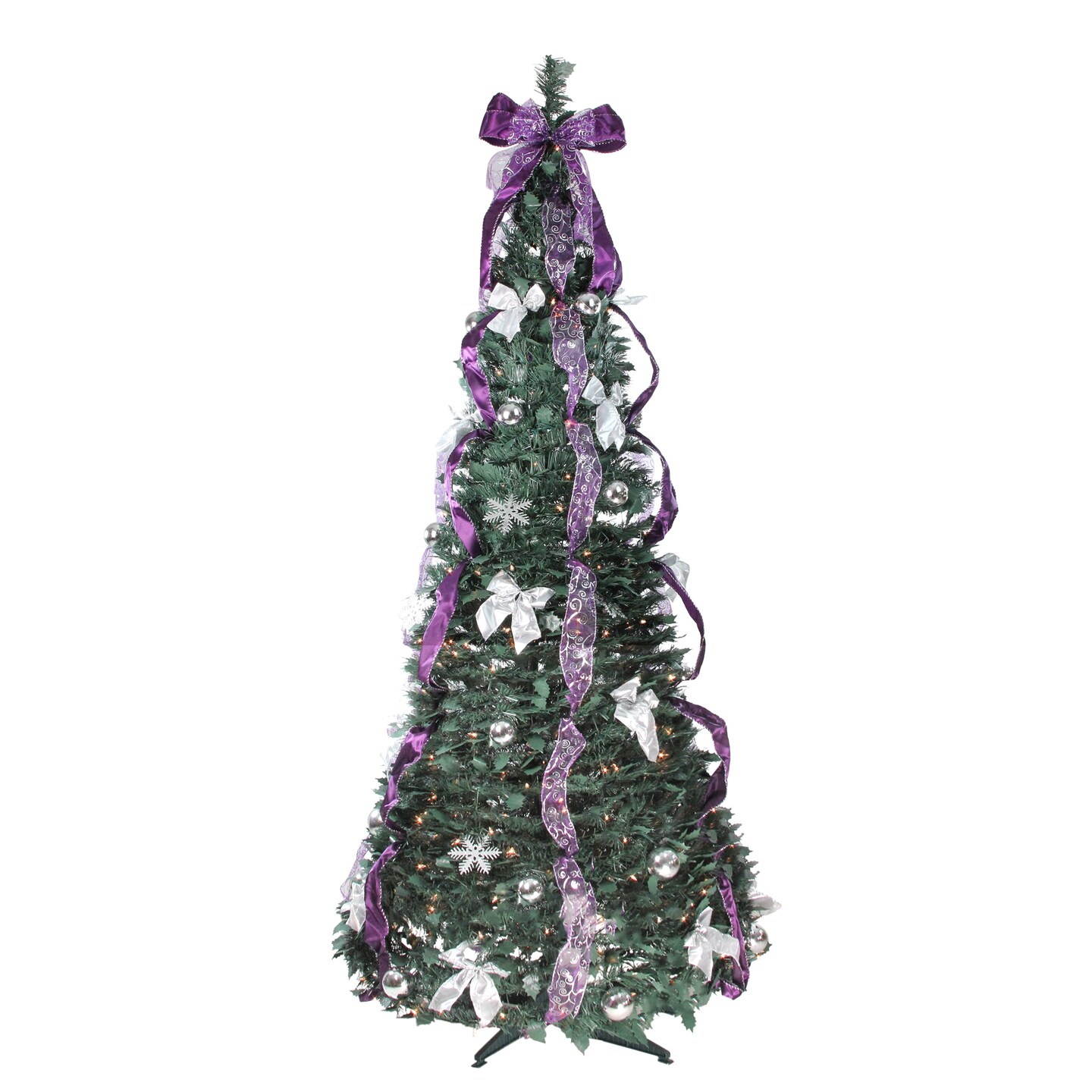 Northlight 6' Pre-Lit Purple and Silver Pre-Decorated Pop-Up Artificial Christmas Tree, Clear Lights