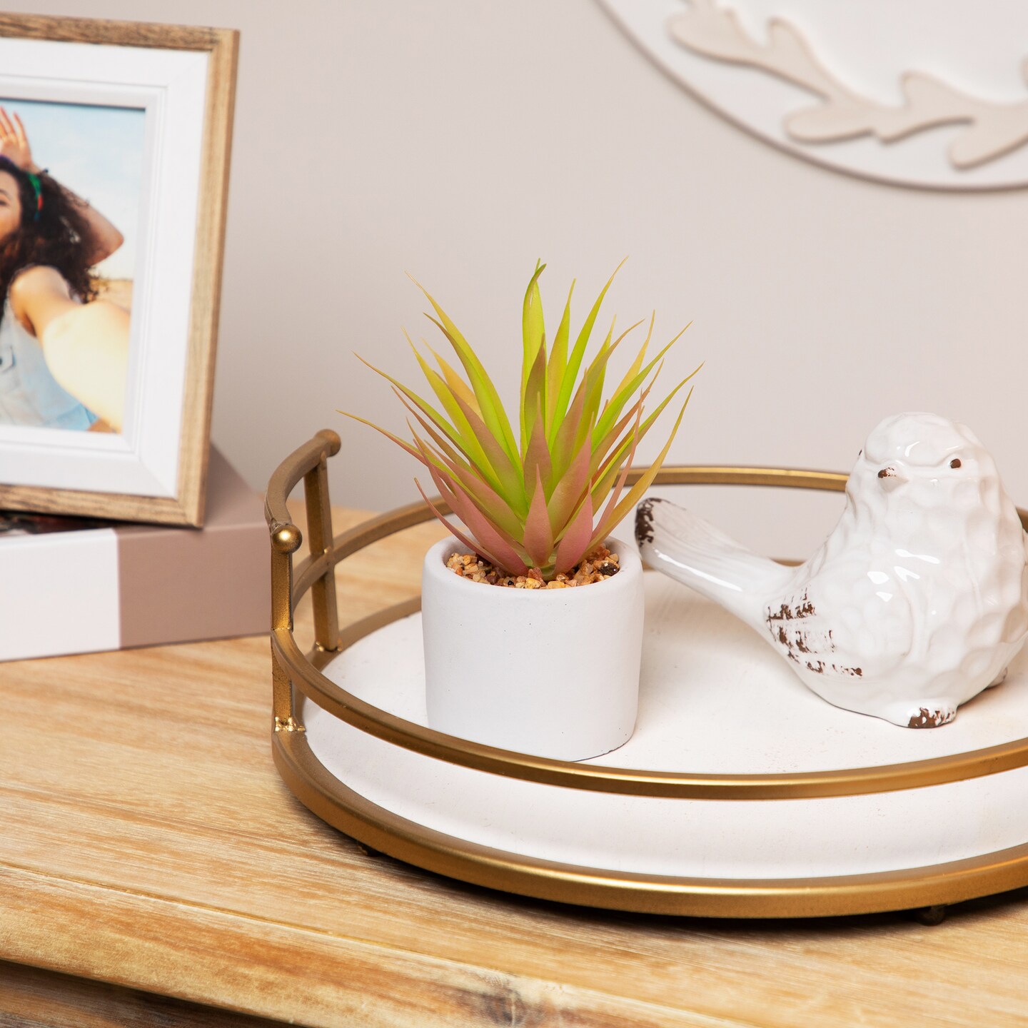 Northlight 6.5" Green Artificial Sword Grass in a White Pot