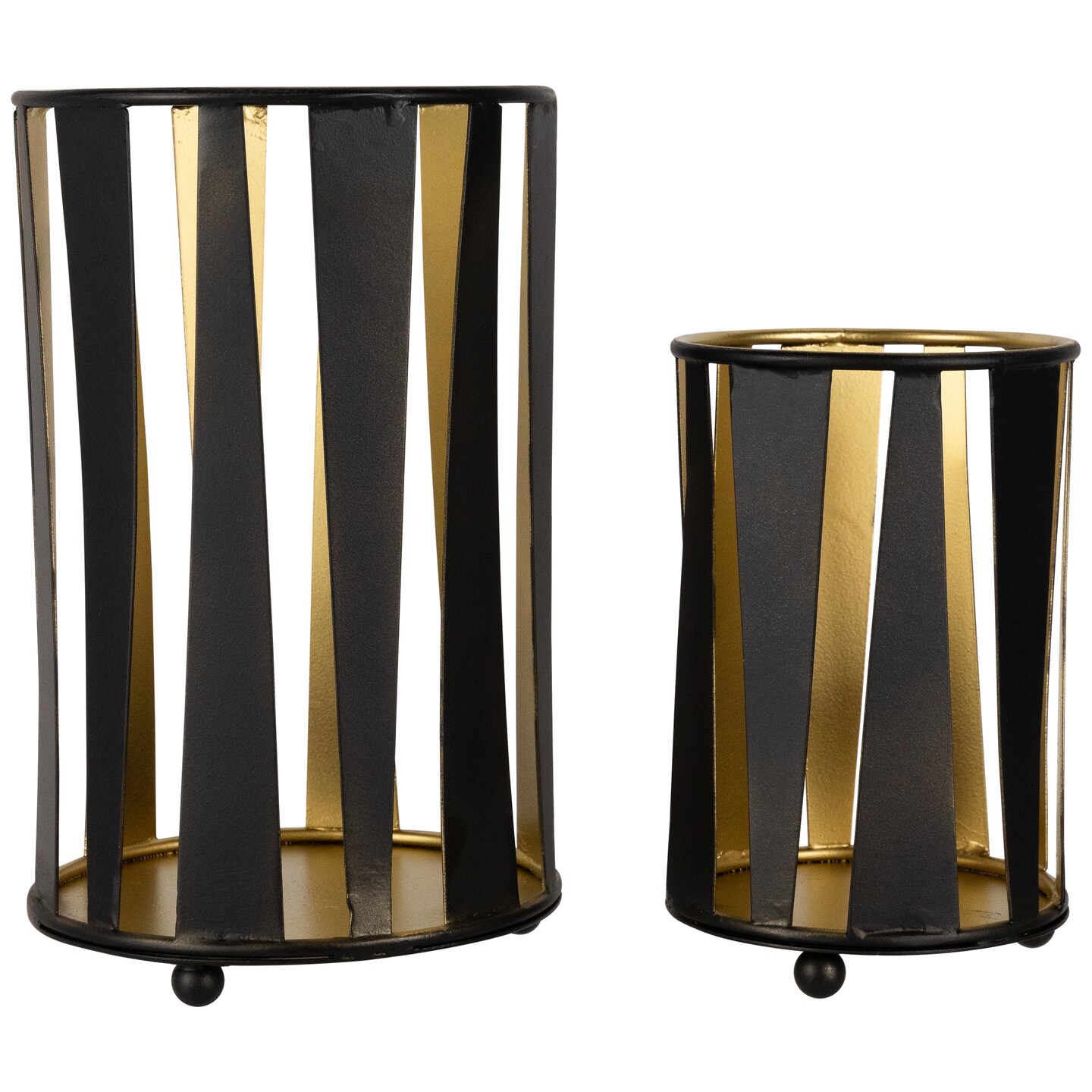 Northlight Abstract Iron Pillar Candle Holders - 9" - Black and Gold Finish - Set of 2