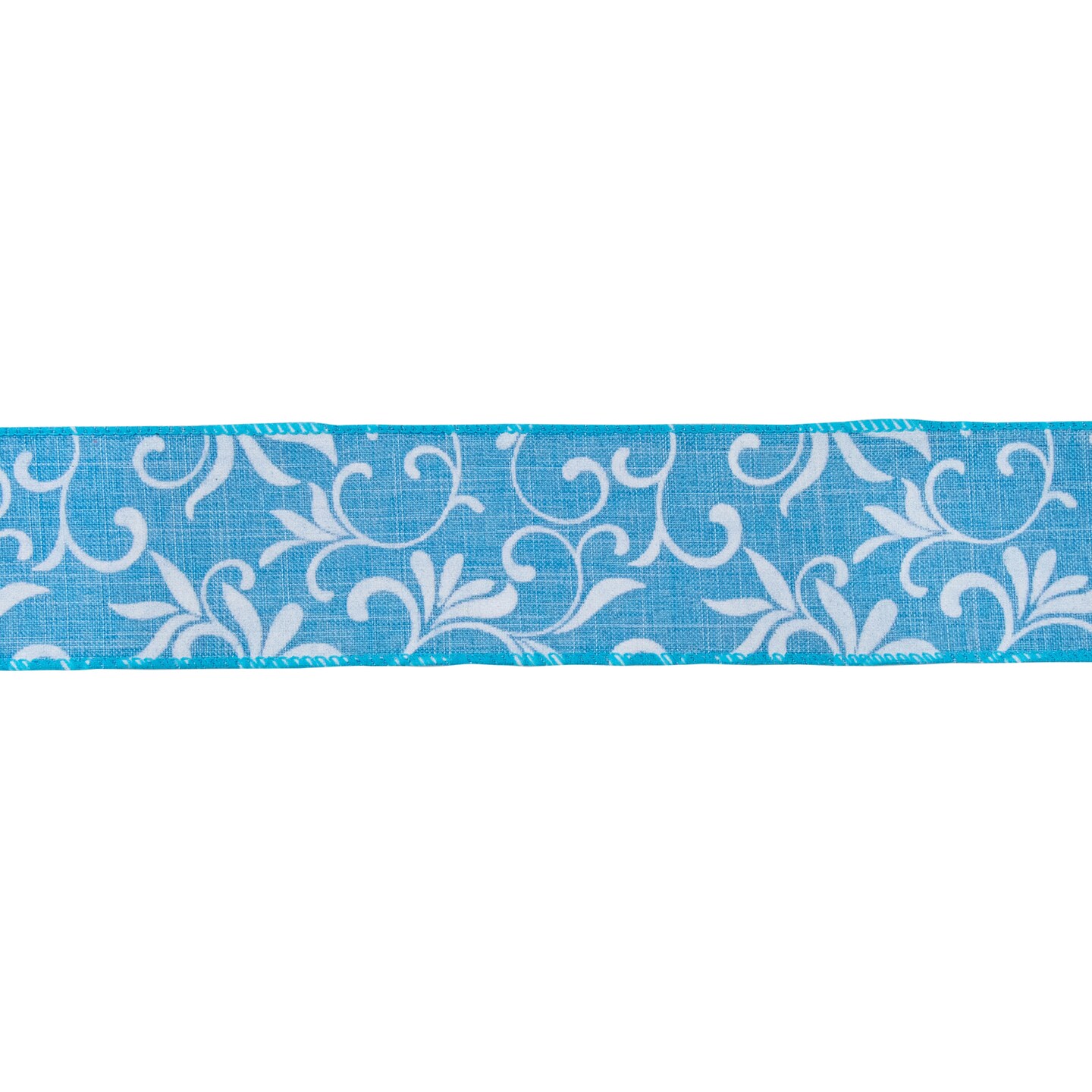 Northlight Blue with White Floral Design Wired Craft Ribbon 2.5" x 10 Yards