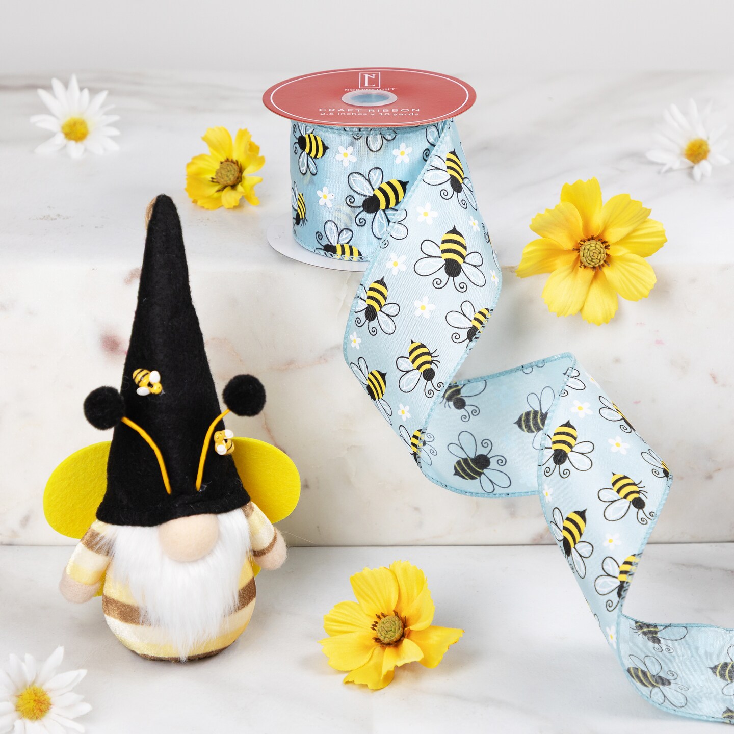 Northlight Bumblebee Design Wired Spring Craft Ribbon - 2.5" x 10 Yards - Blue