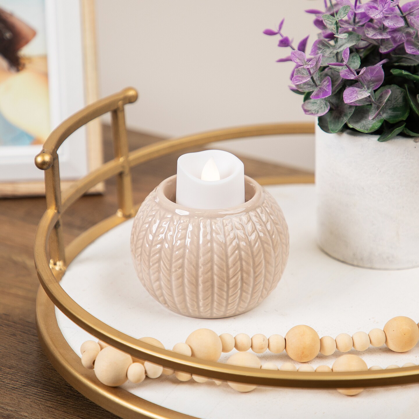 Northlight Cable Knit Ceramic Christmas Candle Holder - 3.25" - Beige