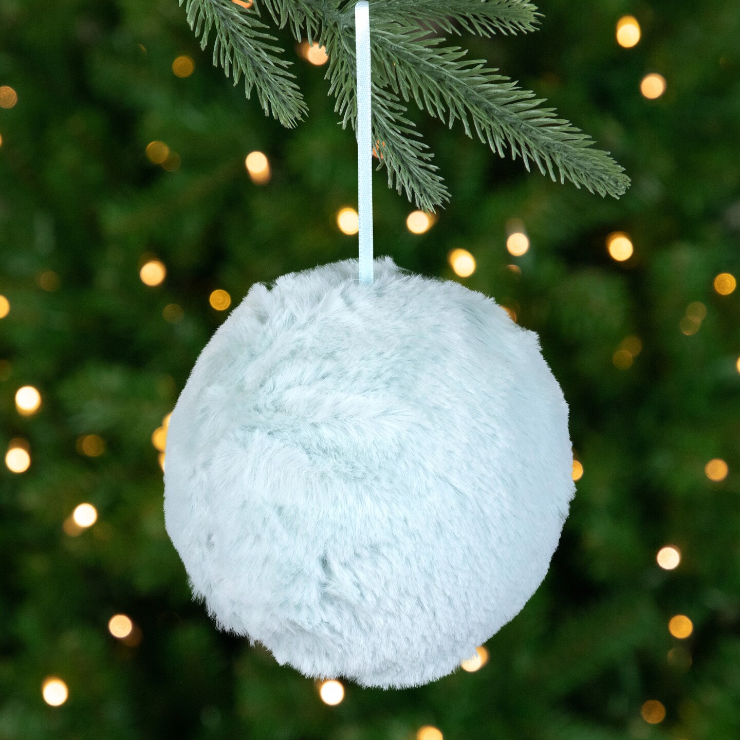 Northlight Faux Fur Plush Ball Christmas Ornament - 4" - Light Green