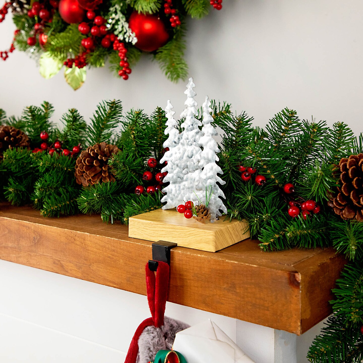 Northlight Galvanized Christmas Trees with Wooden Base Stocking Holder - 8.5"