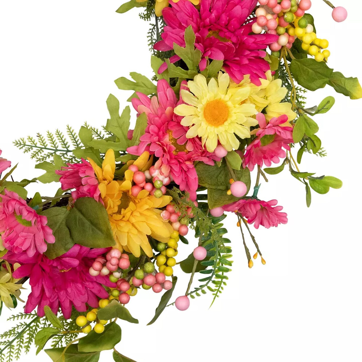 Northlight Gerbera Daisy, Berries and Daisy Floral Spring Wreath 23" Pink/Yellow