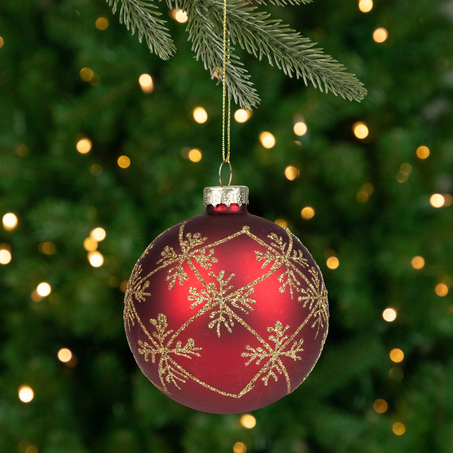 Northlight Glittered Snowflake Glass Ball Christmas Ornament - 3.25" - Burgundy Red and Gold