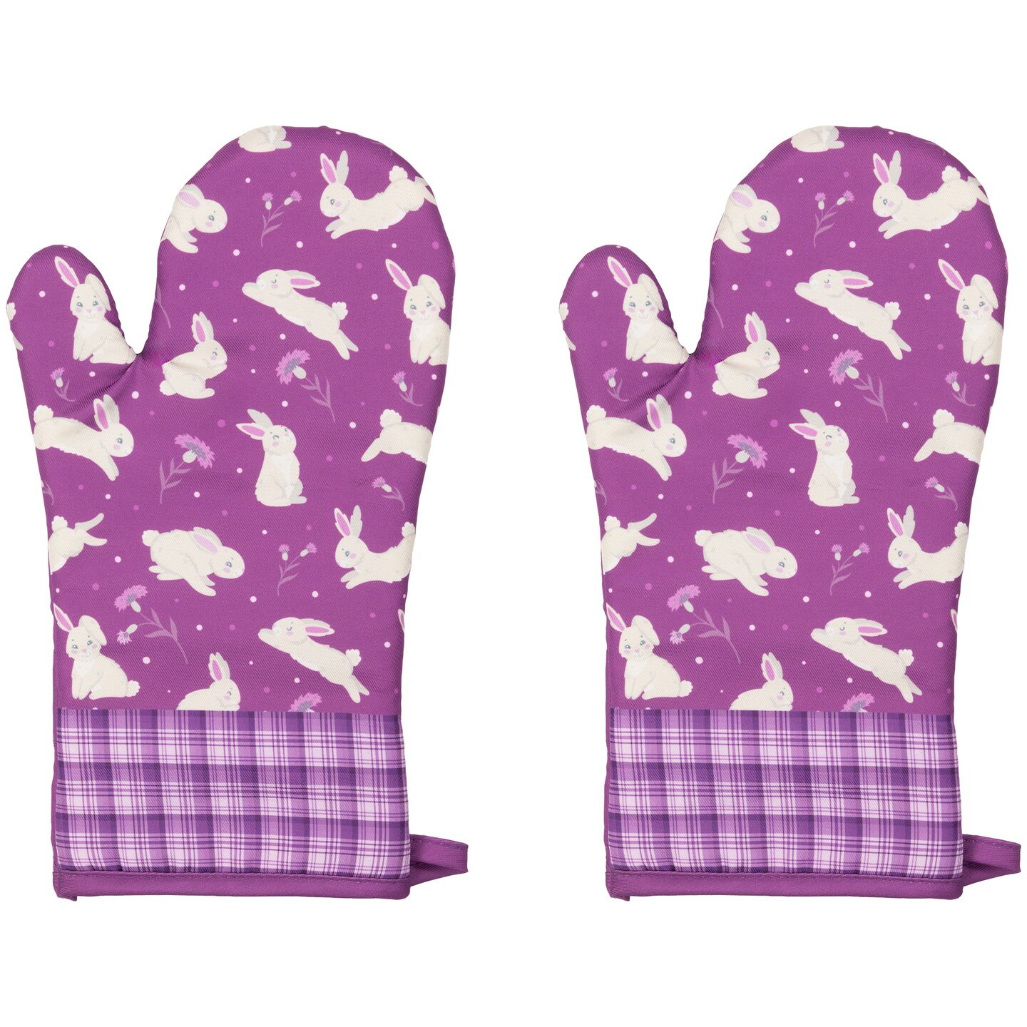 Northlight Hopping Bunnies Plaid Easter Kitchen Oven Mitts - 13.75" - Purple - Set of 2