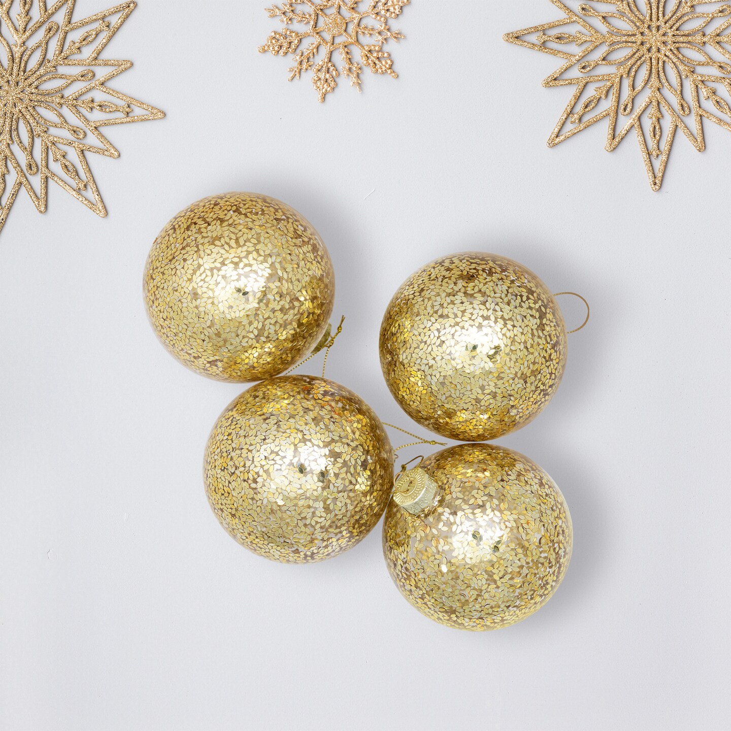Northlight Metallic Leaves Christmas Glass Ball Ornaments - 4" (100mm) - Clear and Gold - 4ct