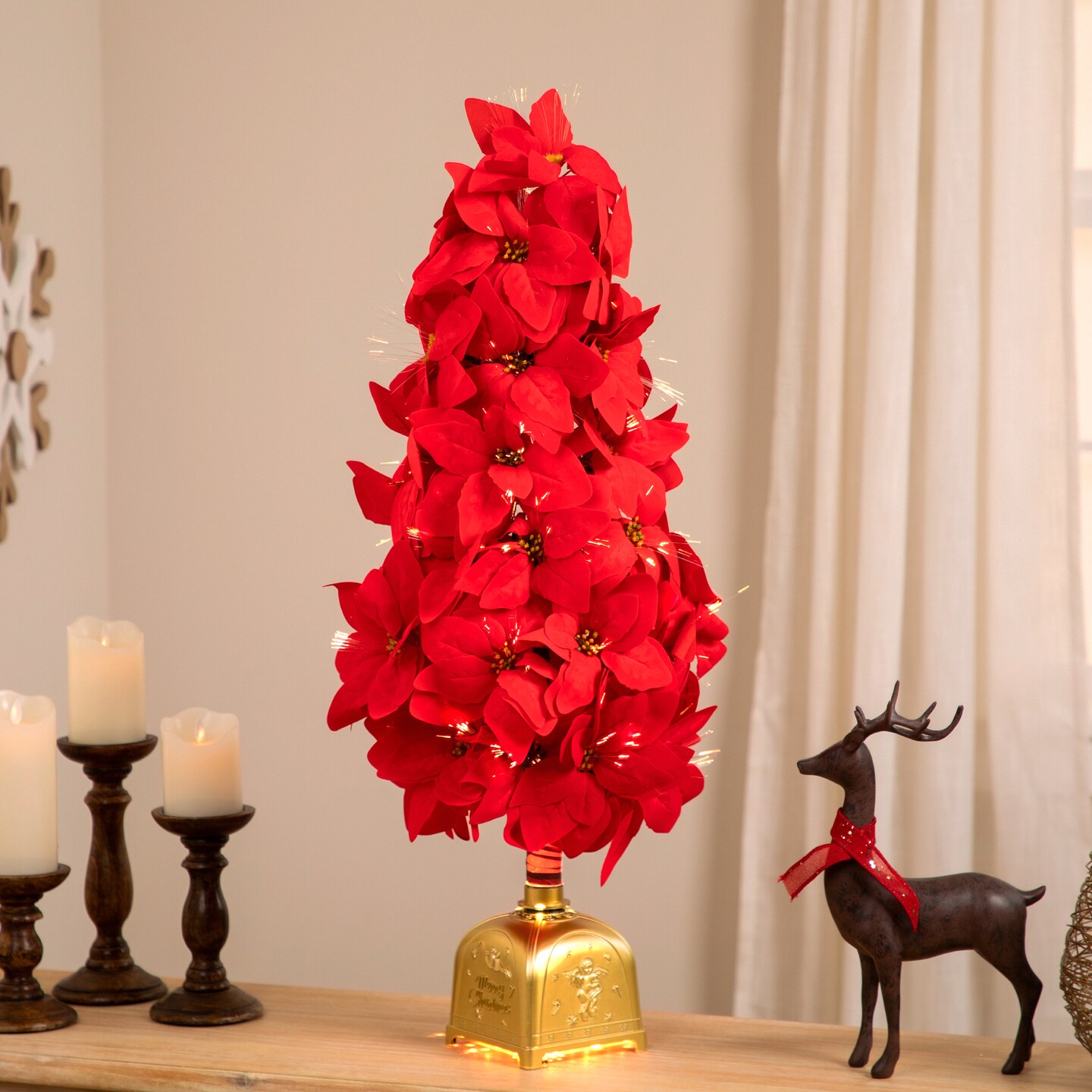 Northlight Pre-Lit Fiber Optic Color Changing Red Poinsettia Christmas Tree - 3'