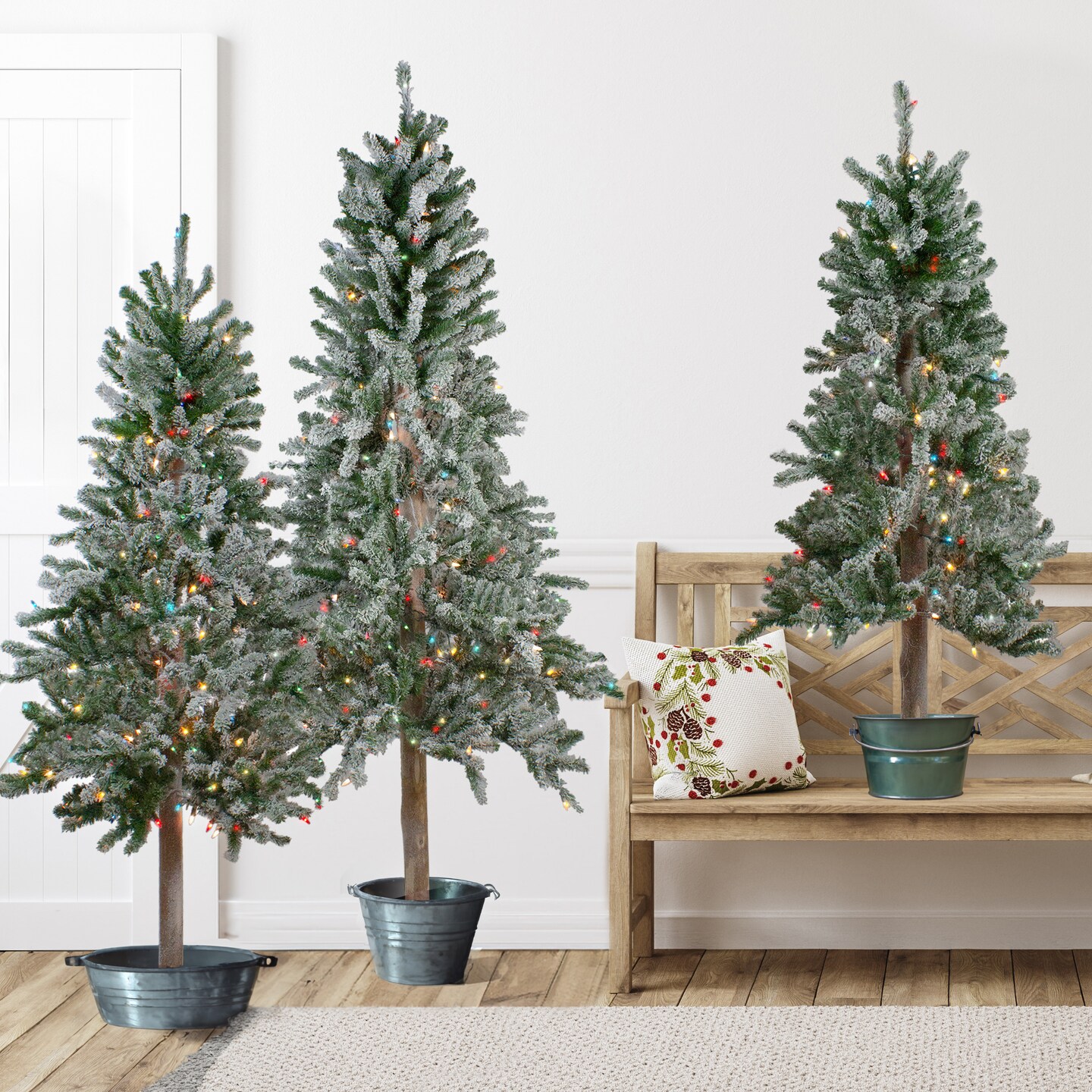 Northlight Pre-Lit Slim Flocked Alpine Artificial Christmas Trees - 6' - Multicolor Lights - Set of 3