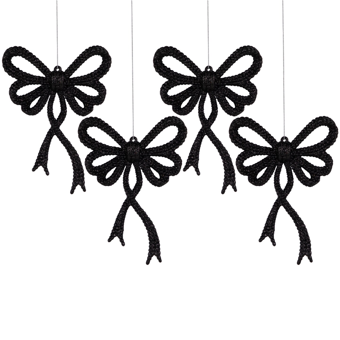 Northlight Set of 4 Black Glitter Bowtie Christmas Ornaments 6"